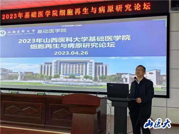 4月26日,基础医学院细胞再生与病原研究论坛在中都校区逸夫楼一层学术报告厅举行。校党委常委、副校长焦向英教授出席,基础医学院各科研团队骨干成员、青年博士、在读研究生等100多人参加了学术交流活动。论坛由陆利副院长主持。