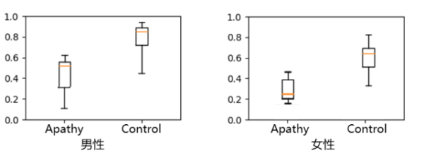 方法对男性和女性的冷漠症组与对照组之间区分度