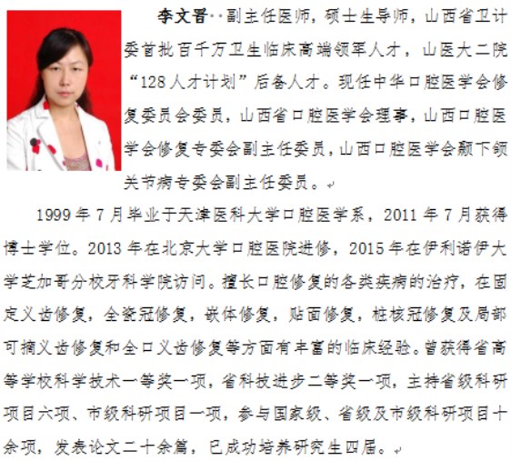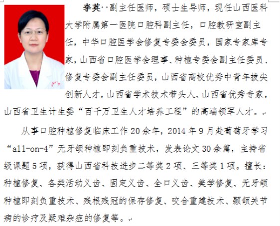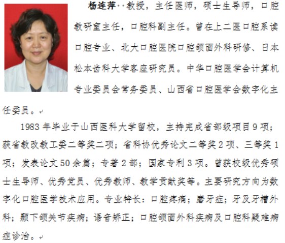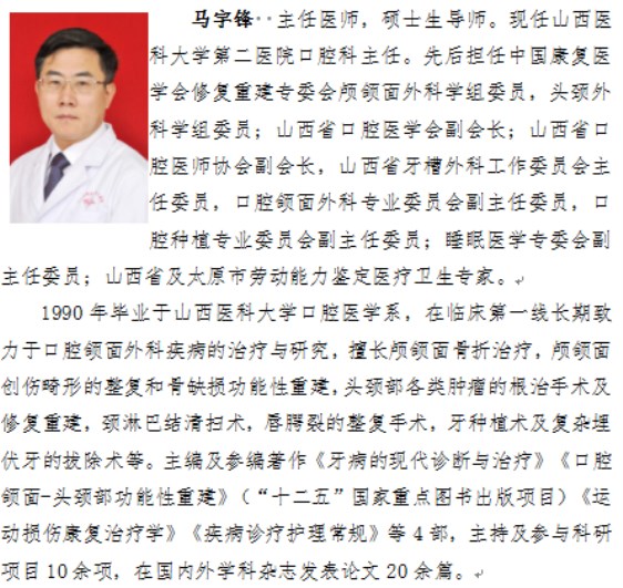 口腔修复科0351-4690377    口腔种植科0351-4690227    口腔正畸科0351-4690306    口腔颌面外科0351-4690307