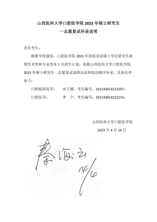 万象城allwincity官网口腔医学院2023年硕士研究生一志愿复试补录说明