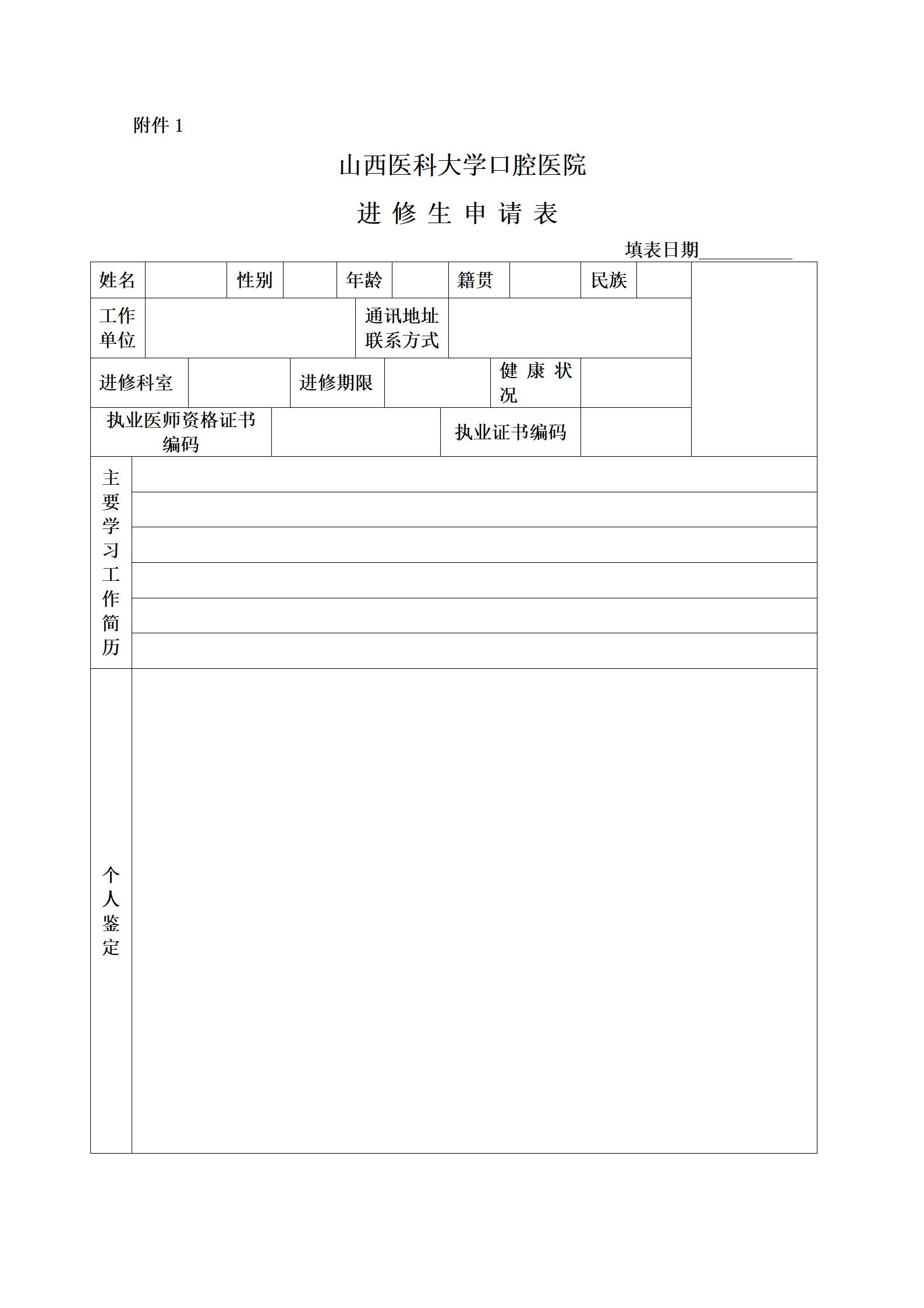 附件1 万象城allwincity官网口腔医院进修生申请表