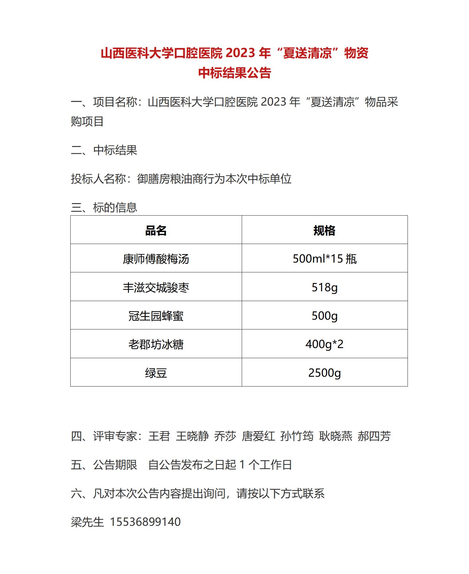万象城allwincity官网口腔医院2023年“夏送清凉”物资 中标结果公告