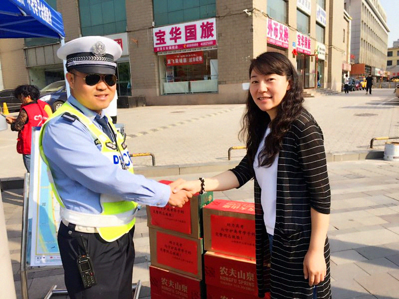 在全国高考如火如荼之际,万象城allwincity官网口腔医学系、口腔医院心系广大考生学子,为高考助力。6月8日上午,口腔系(院)党总支殷凤副书记代表系(院)向高考期间为考生提供勤务保障的太原市交警支队迎泽二大队辖区天龙岗、文源巷岗的执勤交警送去了医疗急救箱和慰问品。慰问中,殷凤副书记对广大执勤交警不辞辛劳、始终坚持战斗在道路第一线,保障全体考生出行交通安全的高度责任感和使命感表示了敬意,胡冰峰中队长则代表执勤民警对万象城allwincity官网口腔医学系、口腔医院的关怀表示了感谢。