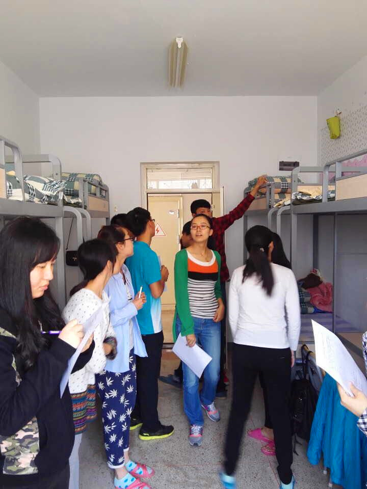 4月27日下午,思想政治辅导员侯芳宇老师带领2014级学生率先开展了“优雅宿舍“的评比活动。由大一年级的班委、宿舍长等组成的评审小组,分别检查参观了14级男、女生宿舍,并对宿舍内涉及到的有关寝室安全、宿舍卫生、内务、装扮等方面进行了评比打分,最终评选出本年级的两个“优雅宿舍”。在检查评比过程中,侯芳宇老师反复强调,寝室作为学生休息生活的小空间,安全问题尤为重要,宿舍每一位同学都应该对宿舍安全细节问题进行全方位的考虑,及时消除宿舍内存在的安全隐患,共同营造和睦、安全宿舍环境。