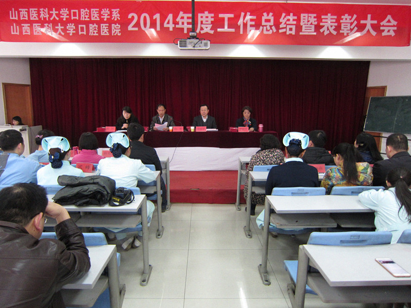 赵彬副院长(主持工作)作了2014年度工作总结和2015年工作计划的报告。他指出,2014年我系(院)本着社会效益优先,经济效益并行,社会效益重于经济效益的思想,一手抓医院硬件建设,不断改善医院环境和设备水平,一手抓医院内涵建设,严格内部管理,提高医疗质量,医院发展步入快车道,各项工作取得了一定的成绩。关于2015年工作,他强调,习近平总书记的“四个全面”重要讲话吹响了改革开放和社会主义现代化建设的号角,省委、省政府也提出了“净化政治生态、实现弊革风清、重塑山西形象、促进富民强省”的总体要求,结合万象城由教学型大学向教学科研型大学转变的大背景,我系(院)广大干部职工应以十八届三中全会精神为指导,坚持科学发展观,树立以人为本、科学管理理念,乘势而上,跨越创新,突出人才战略,打造系(院)品牌,以高昂的斗志锐意进取,以饱满的热情奋勇前进,为把我系(院)建设成为全省一流三甲口腔专科医院、全国有一定影响的口腔医学院校而努力奋斗。会议的召开对进一步明确系(院)发展的工作重点和奋斗目标,进一步总结了经验,理清工作思路,尤其是对实现医院的跨越式发展具有重要意义。