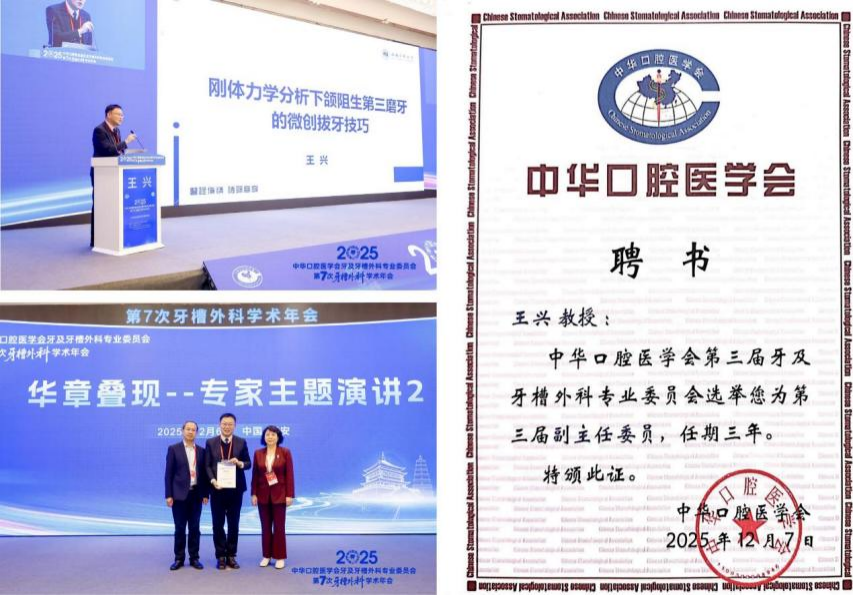 在大会备受关注的换届选举环节,我院口腔颌面外科王兴教授、主任医师凭借深厚的学术造诣、丰富的临床经验及行业影响力,成功当选中华口腔医学会牙及牙槽外科专业委员会副主任委员。同期,我院口腔颌面外科程永峰主任、万象城大二院孙峥主任当选专委会委员,关文钊、张鹏飞副主任医师当选青年委员。这一系列任职突破,不仅填补了山西省在全国口腔医学核心学术机构重要岗位的空白,更标志着我省牙及牙槽外科的专业水平、人才梯队建设正式获得全国行业组织的高度认可,为山西口腔医学融入全国高水平发展格局、提升区域医疗影响力注入强劲动力。