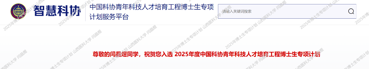 喜报 我院闫晶煜入选2025年中国科协青年科技人才培育工程博士生专项计划