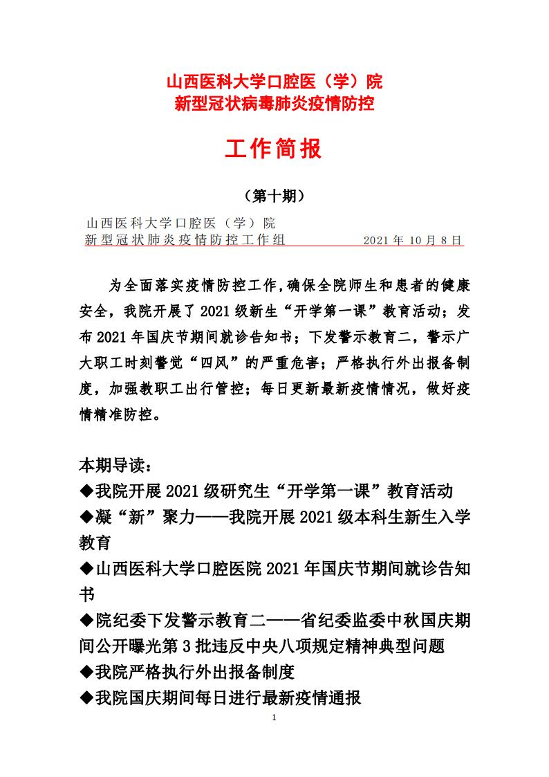 我院新型冠状病毒肺炎疫情防控工作简报(2021年 第十期)