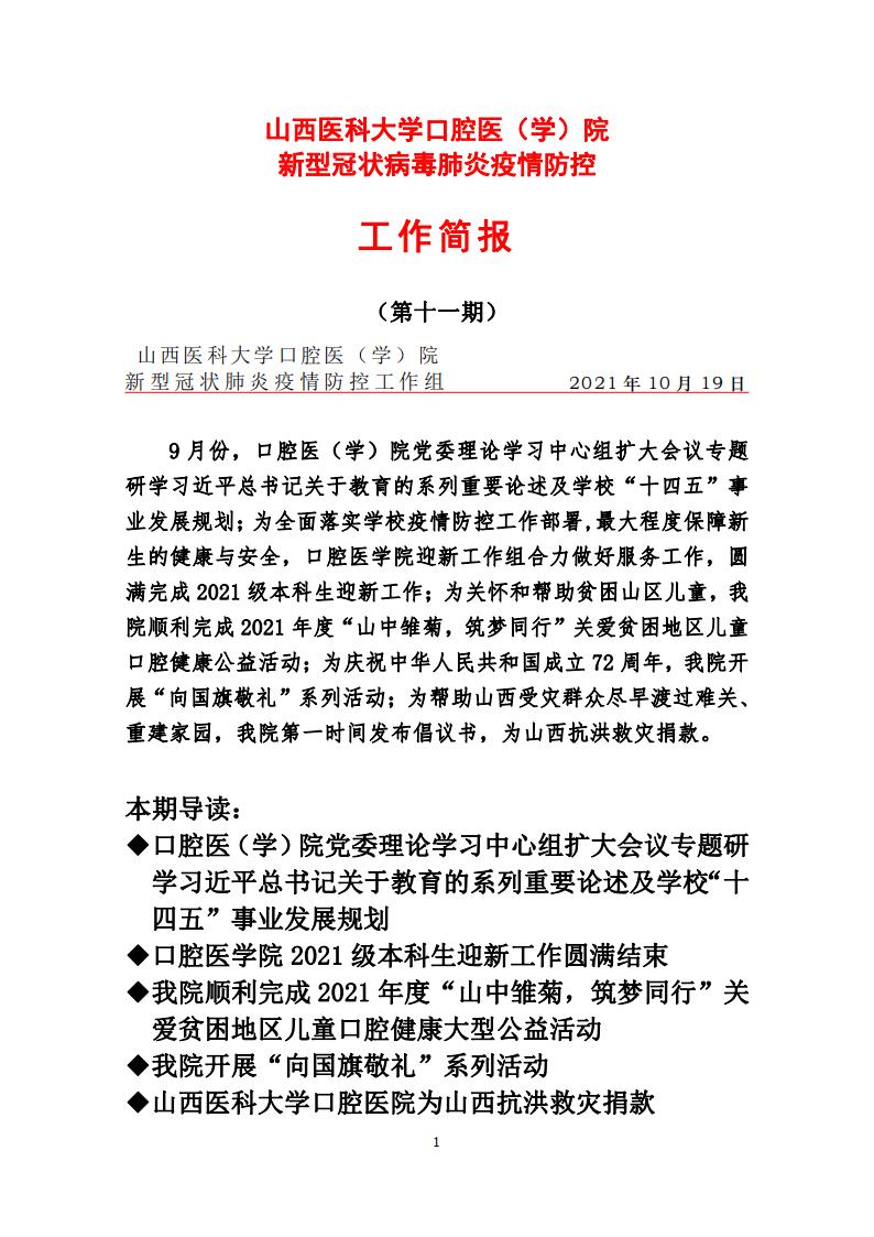 我院新型冠状病毒肺炎疫情防控工作简报(2021年 第十一期)