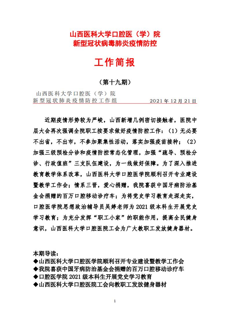 我院新型冠状病毒肺炎疫情防控工作简报(2021年 第十九期)