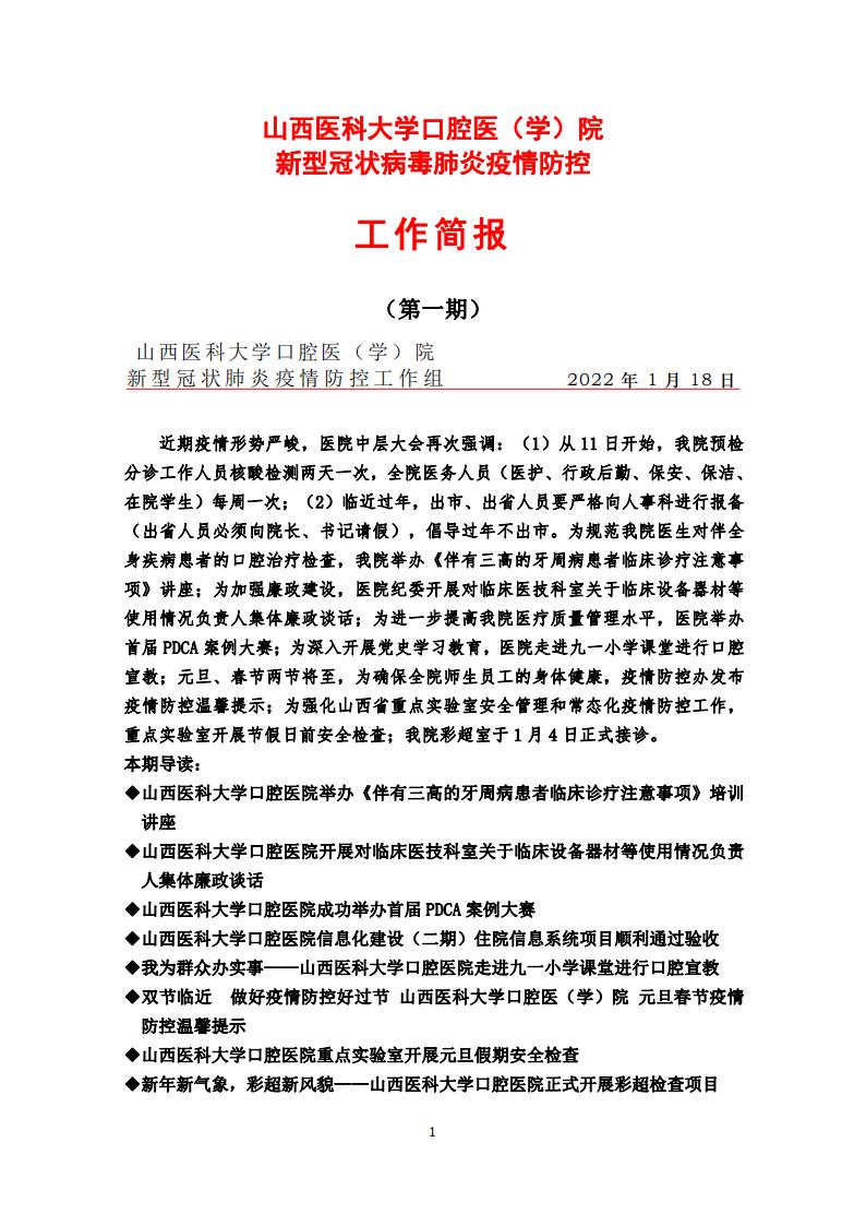 我院新型冠状病毒肺炎疫情防控工作简报(2022年 第一期)