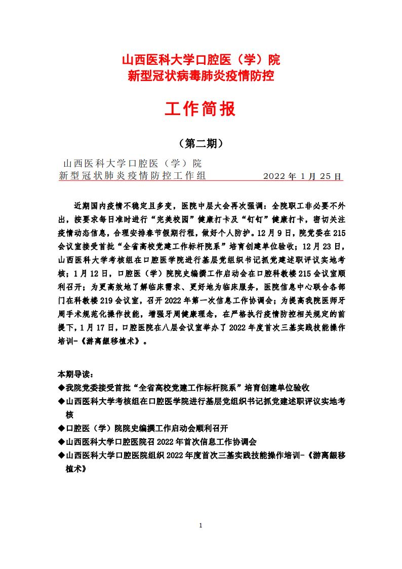 我院新型冠状病毒肺炎疫情防控工作简报(2022年 第二期)