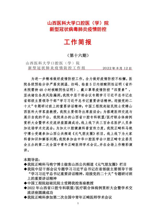我院新型冠状病毒肺炎疫情防控工作简报(2022年 第十六期)