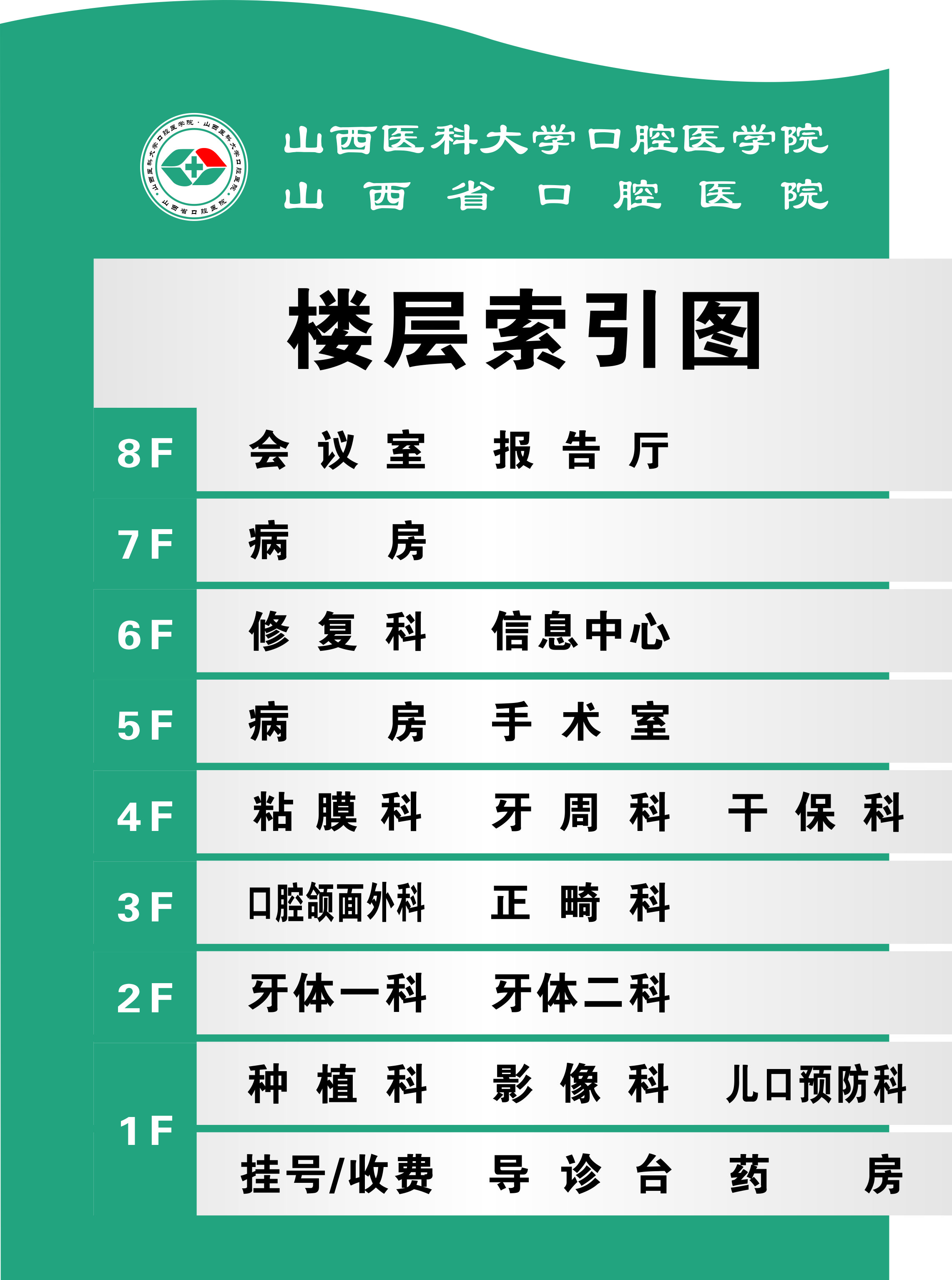 口腔修复科0351-4690377    口腔种植科0351-4690227    口腔正畸科0351-4690306    口腔颌面外科0351-4690307