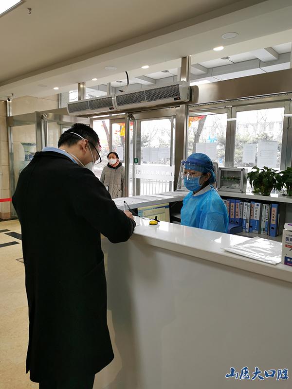 严阵以待是态度、严管严控是行动。目前,新型冠状病毒感染肺炎疫情形势依然严峻,我院按照省卫健委要求,全面暂停门诊常规诊疗工作,只保留必要的口腔急诊和咨询服务。对于非急性患者的口腔问题,我院采取线上和线下相结合的方式来满足患者需求。因此,护理部选派经验丰富的护士在医院导诊总台接听咨询和服务电话,为患者排忧解难。