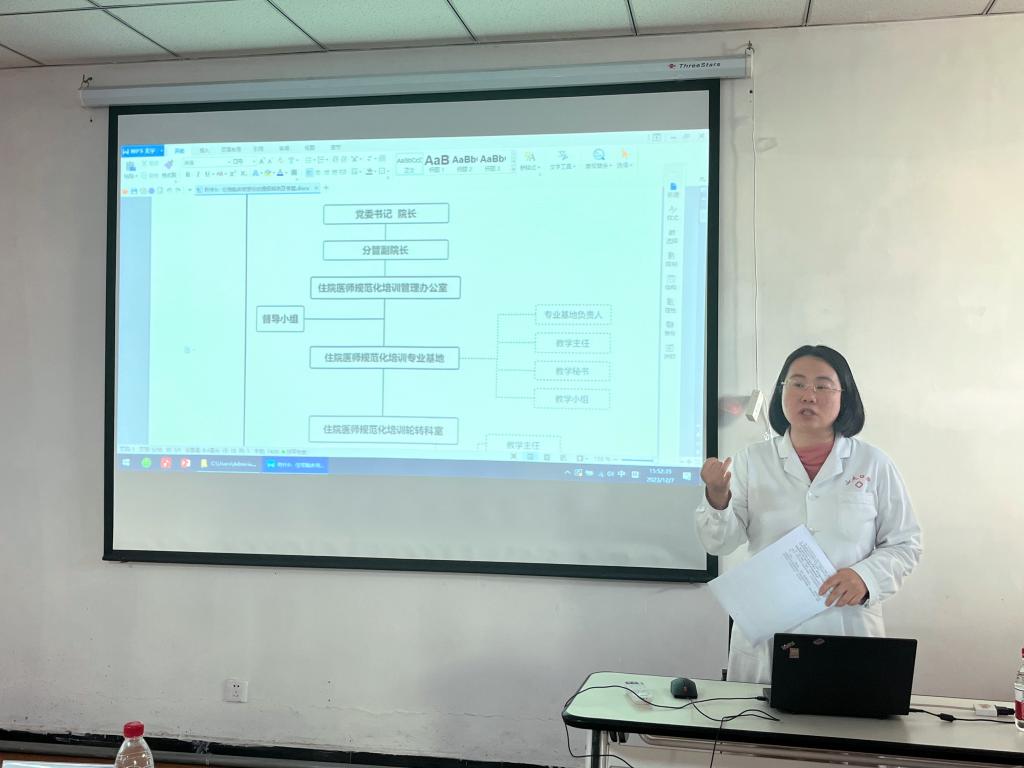 11月29日下午,王晓红主任为大家梳理了住院医师规范化培训专业基地评估指标。她强调,要想成功申报住培基地,必须建立健全住培相关制度,规范开展系列教学活动,强化学生全过程培养监管,提升学员培训质量,严格按照基地建设标准推进住培工作。
