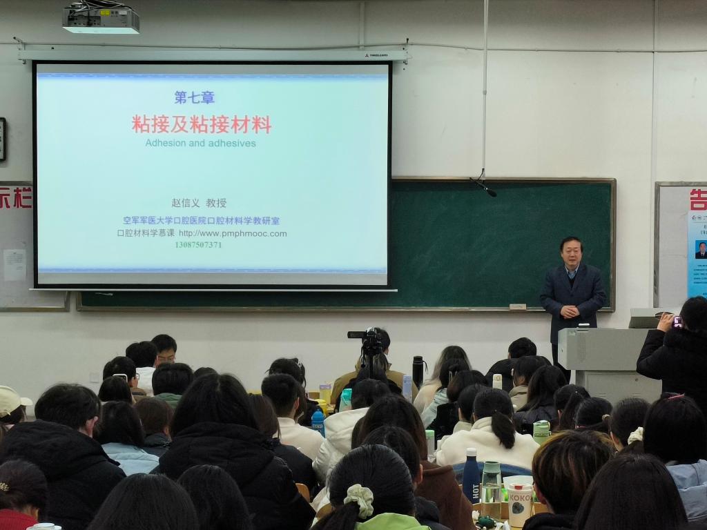 12月13日上午,我院在迎泽校区B座201教室举办了“名师名家进课堂”系列学术讲座,邀请空军军医大学口腔医学院口腔材料教研室教授、博士生导师赵信义作题为“牙齿充填修复用粘接材料”的专题讲座。本次讲座由我院党委副书记、副院长李冰主持,2020级全体本科生参加。