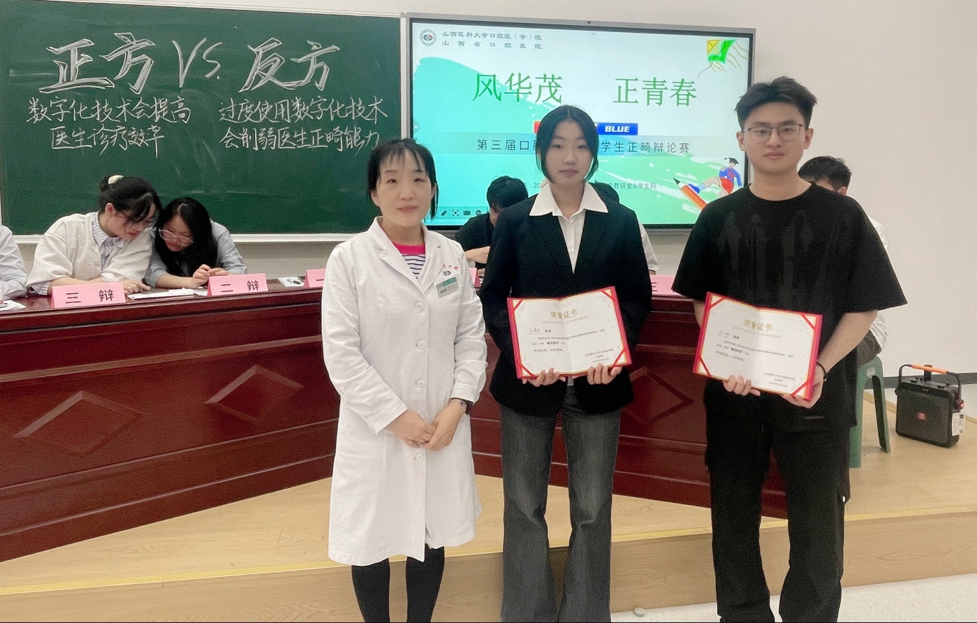 4月16日下午,万象城allwincity官网口腔医学院第三届正畸辩论赛在东院区六教拉开帷幕。本次辩论赛以“风华茂,正青春”为主题,围绕“数字化技术对医生诊疗能力的影响”展开激烈探讨。正畸教研室多位教师、学生思想政治辅导员及现场学生共同参与评审,吸引了众多师生到场观摩。
