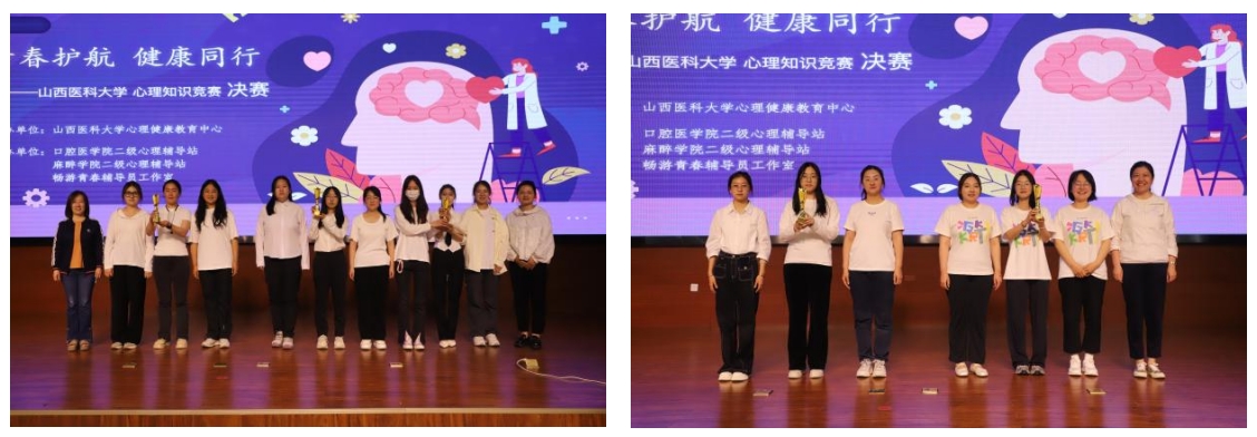 经过三轮激烈比拼,护理学院代表队摘得桂冠,汾阳学院代表队与马克思主义学院代表队荣获二等奖,公共卫生学院代表队、管理学院代表队及基础医学院代表队获得三等奖。在庄重的颁奖典礼上,评委老师为获奖队伍颁发荣誉证书与奖杯,现场掌声雷动,见证这一荣耀时刻。活动结束后,参赛选手与现场观众纷纷表示,通过此次比赛深化了对心理健康知识的理解,有效提升了心理调适能力,在今后的学习生活中将更好地运用所学知识守护心灵健康。