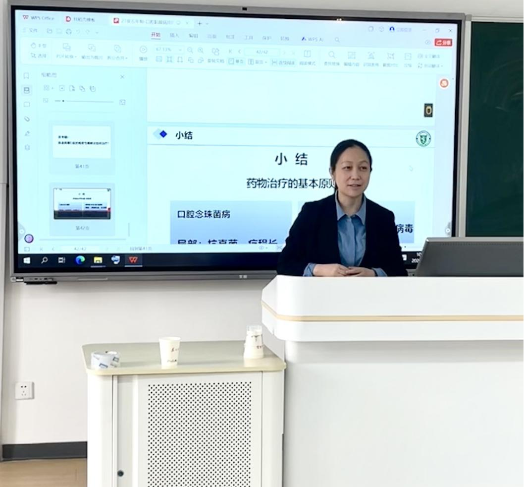 刘青教授作为《口腔临床药物学》(第六版)主编、中华口腔医学会口腔药学专业委员会主任委员,在国内口腔临床药学领域具有重要影响力。活动期间,刘教授为五年级学生开展黏膜病学药物专题示范教学,结合最新研究成果与临床经验,系统讲解诊疗思路与药物应用,教学严谨生动,极大激发了学生的学习兴趣。此外,他还针对口腔黏膜病学教学提出宝贵建议,强调理论与实践相结合,加强临床能力培养,并分享最新科研进展,为教师教学提供丰富资源。