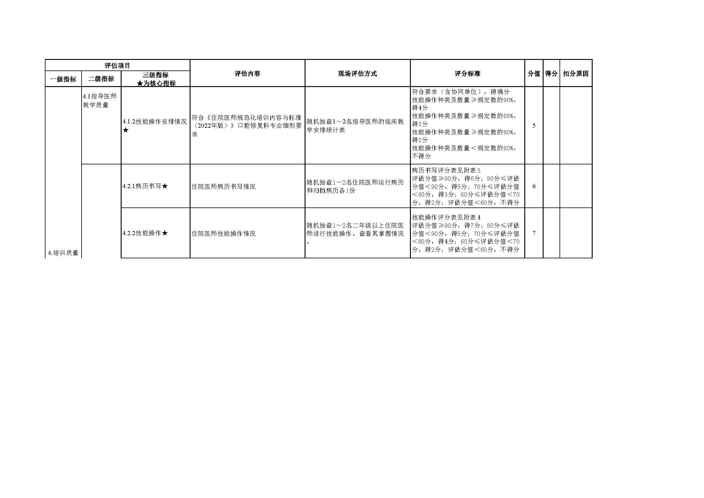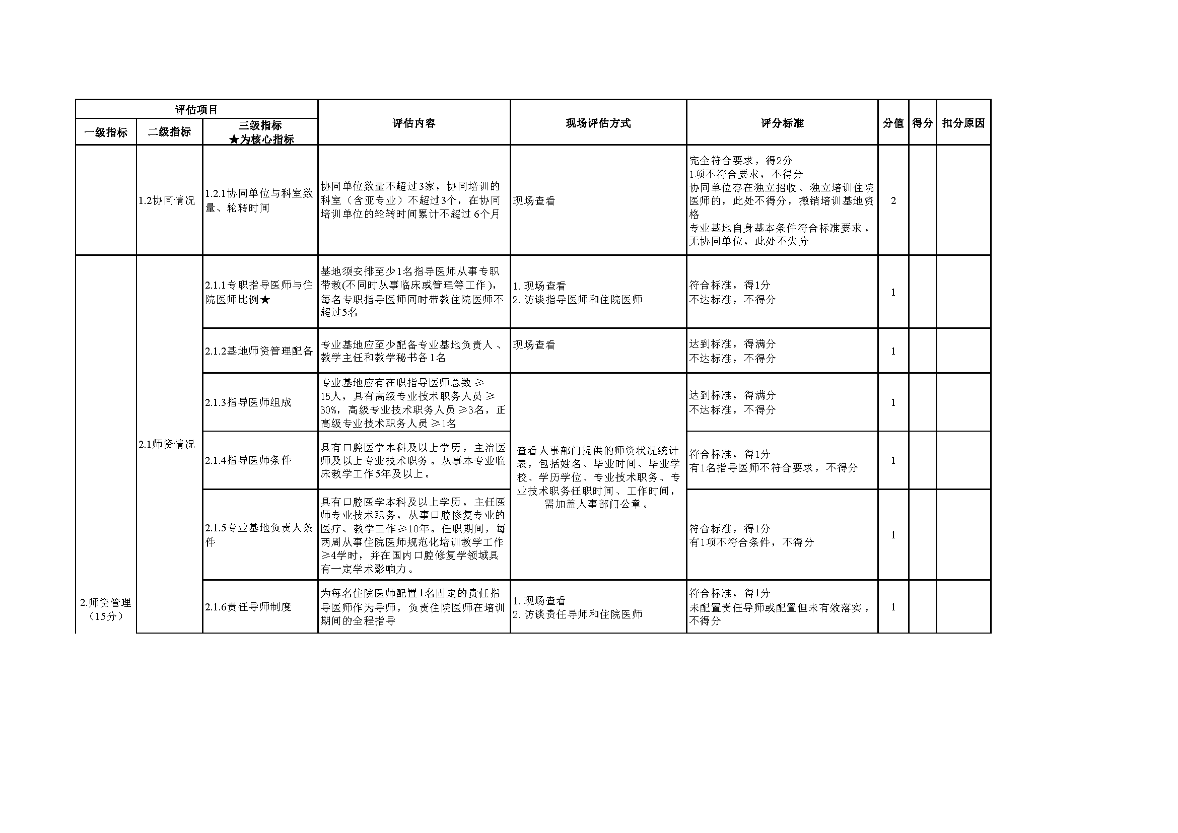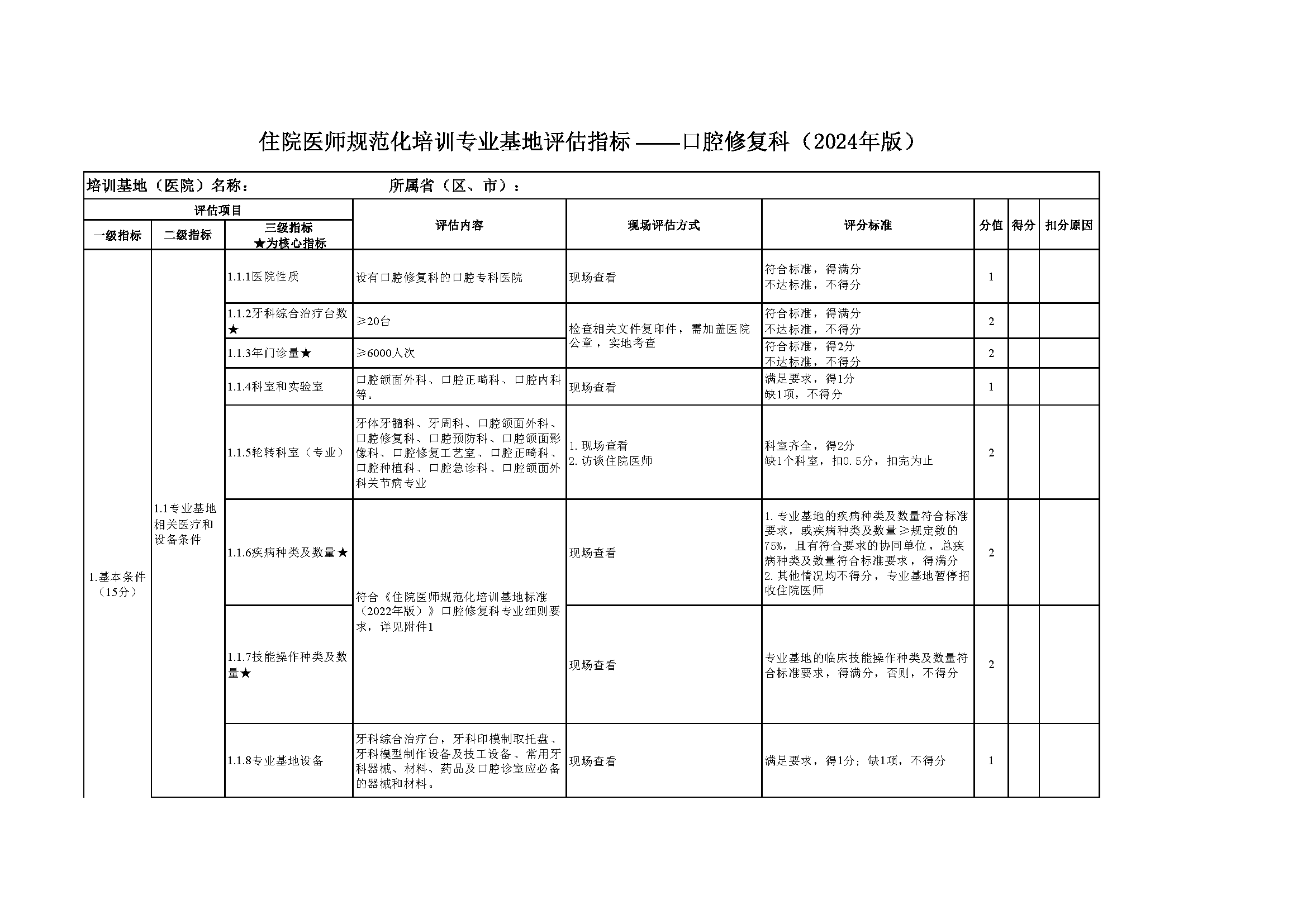 住院医师规范化培训专业基地评估指标(2024年版)—口腔修复科