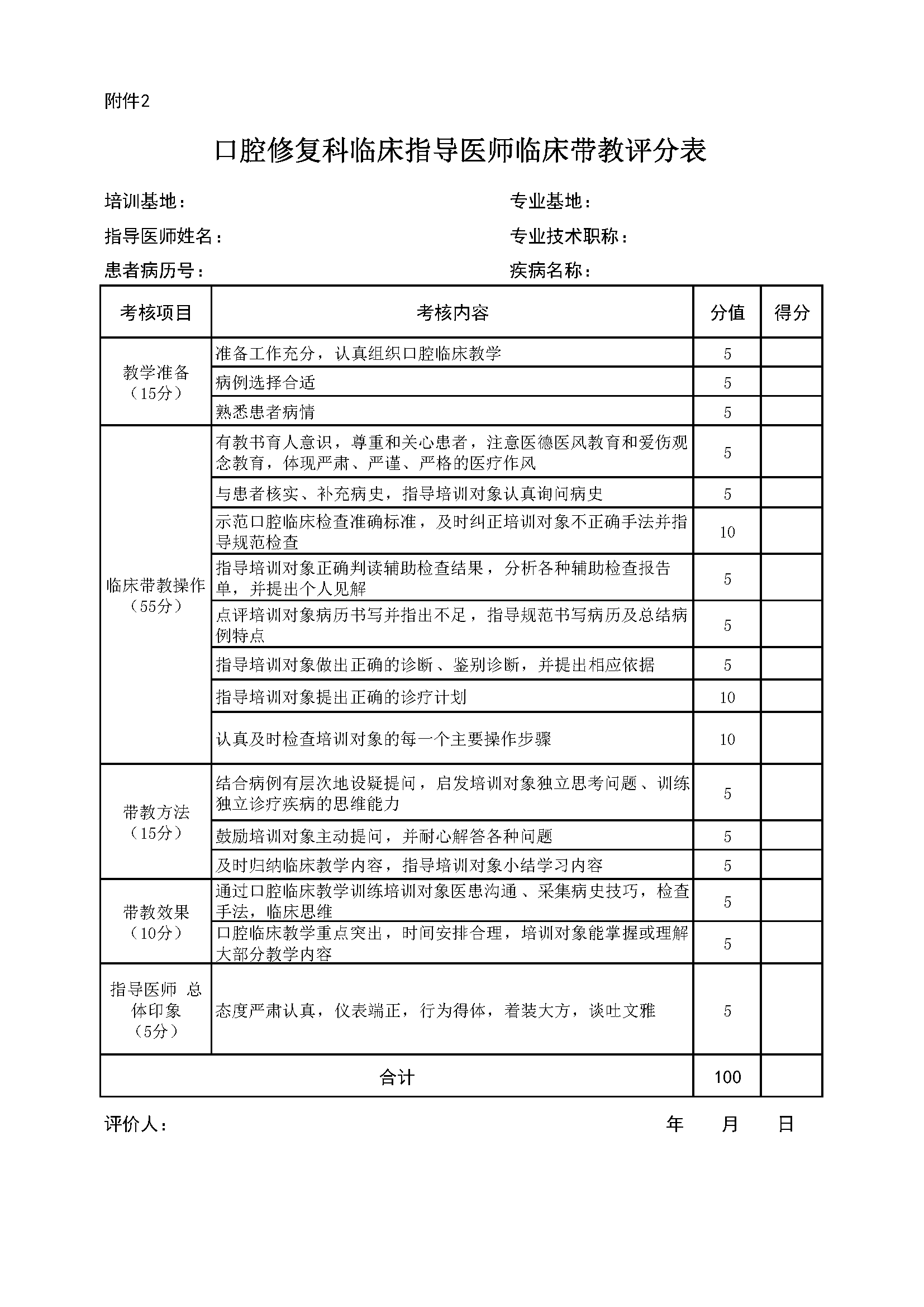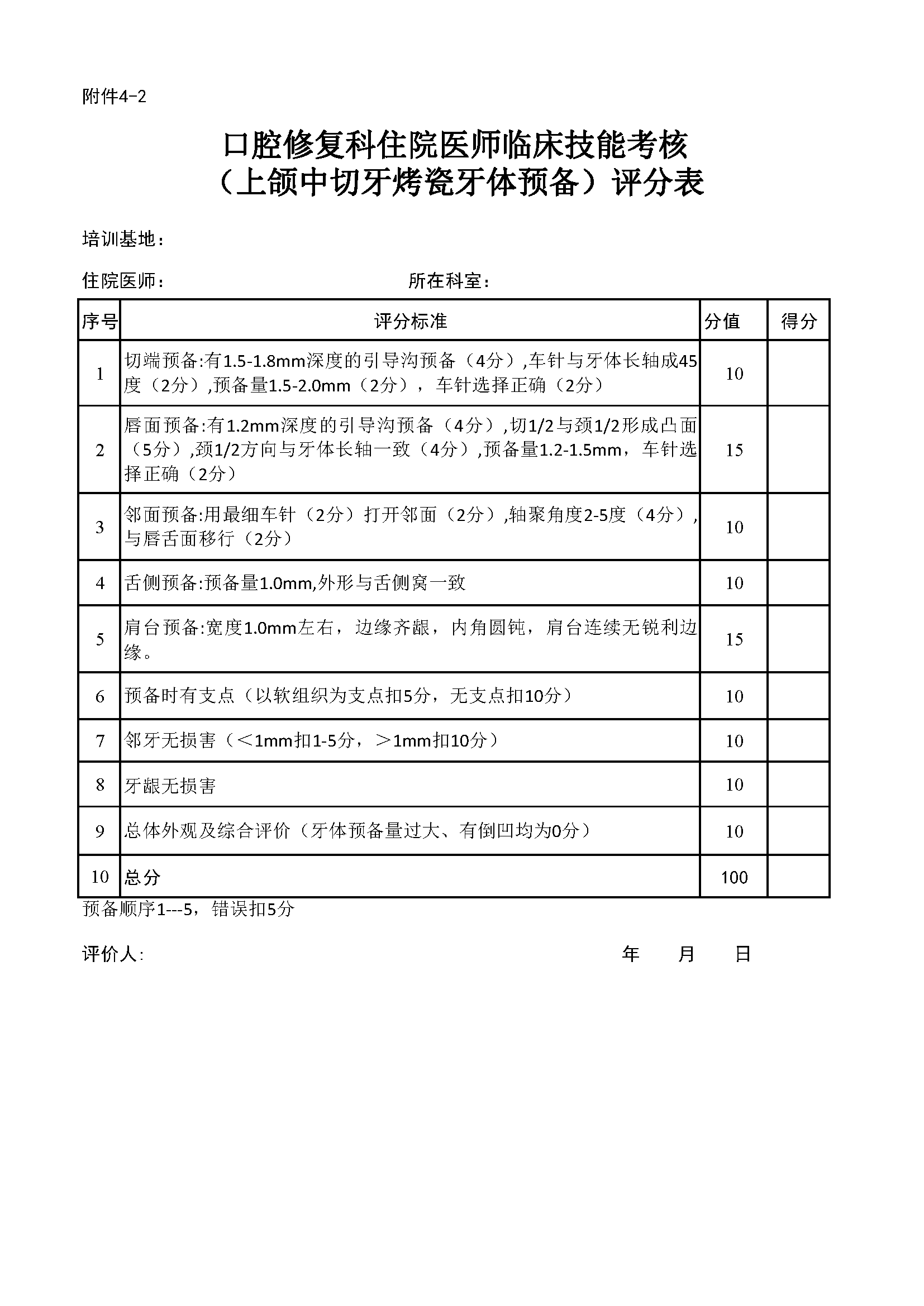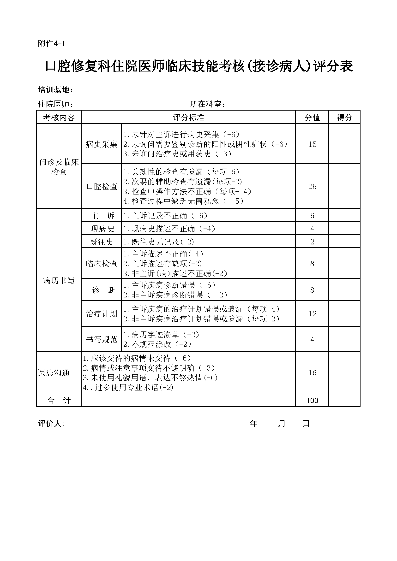 住院医师规范化培训专业基地评估指标(2024年版)—口腔修复科