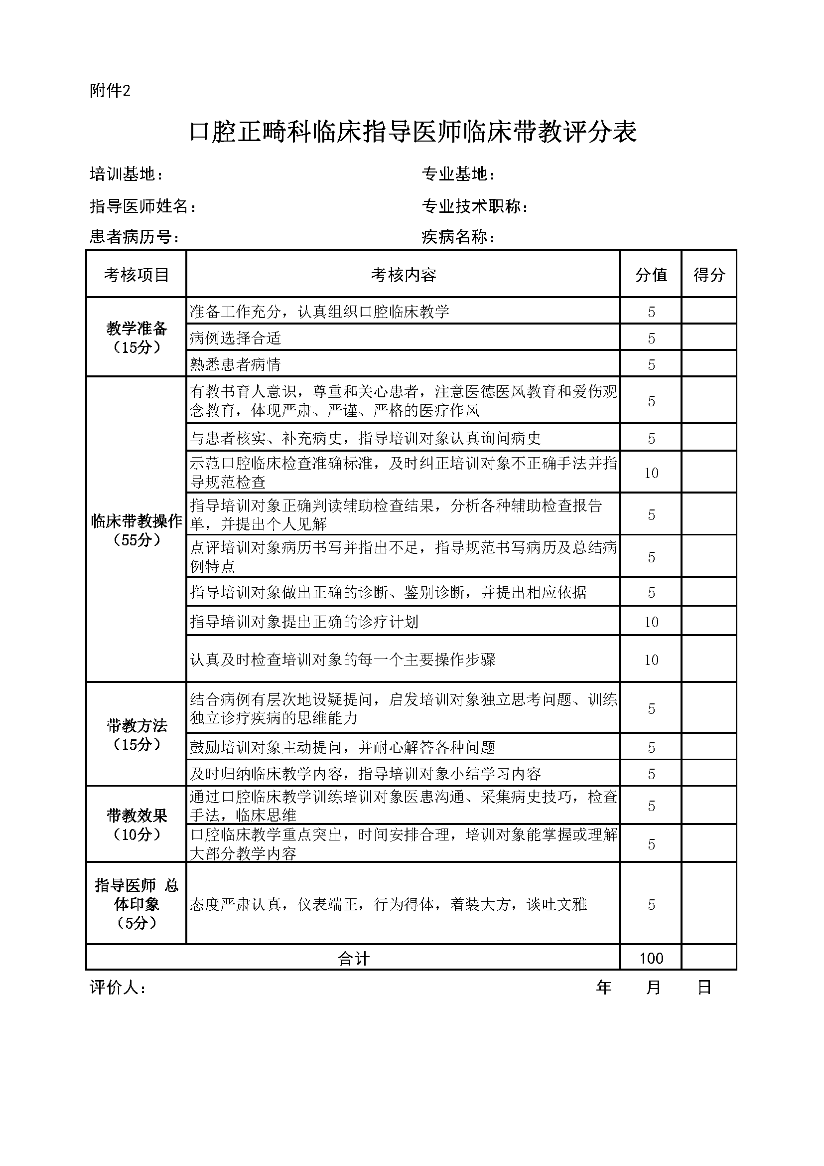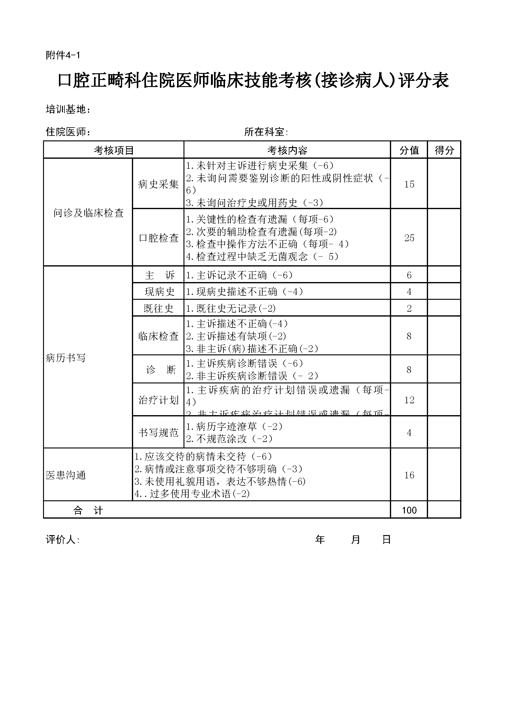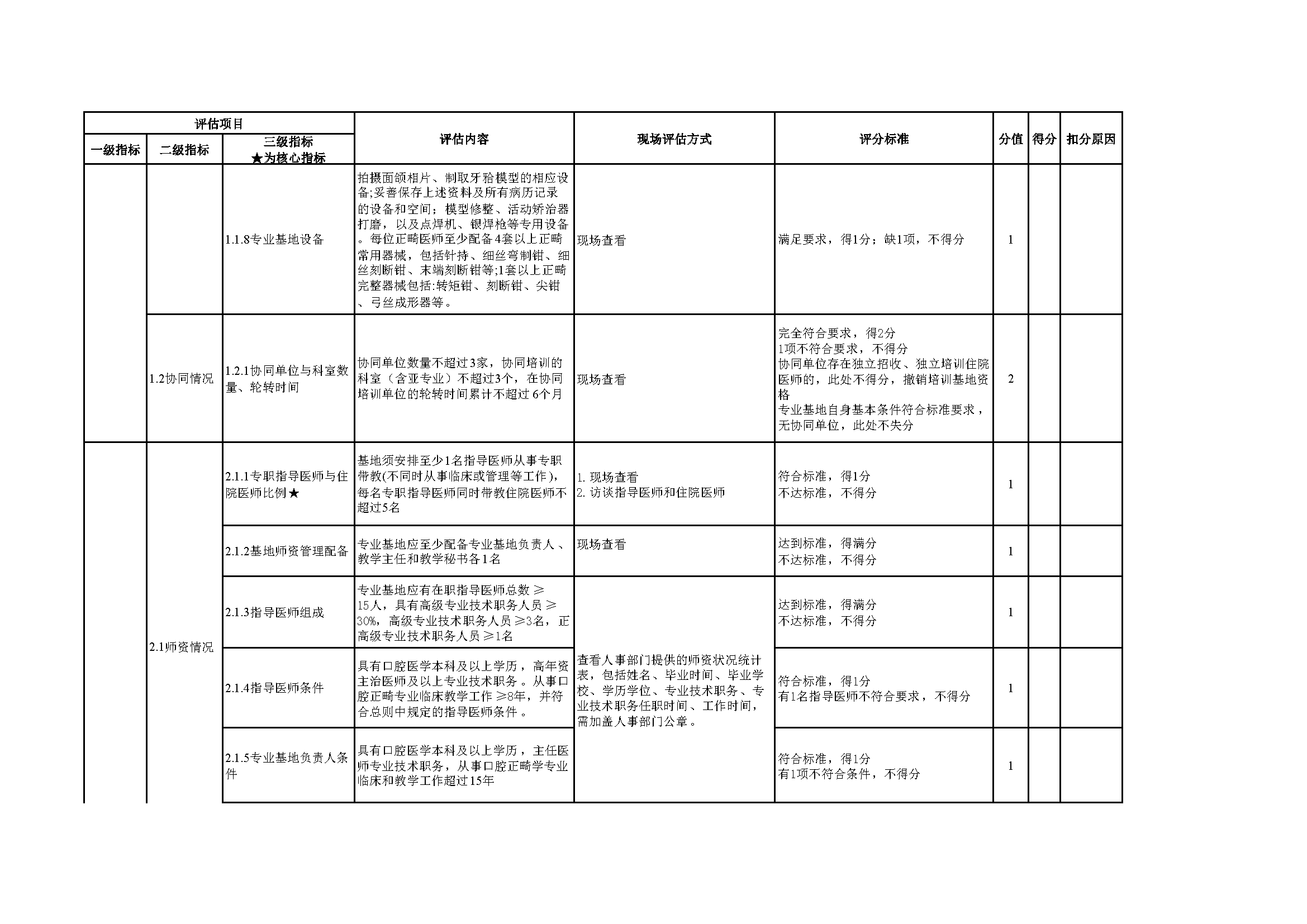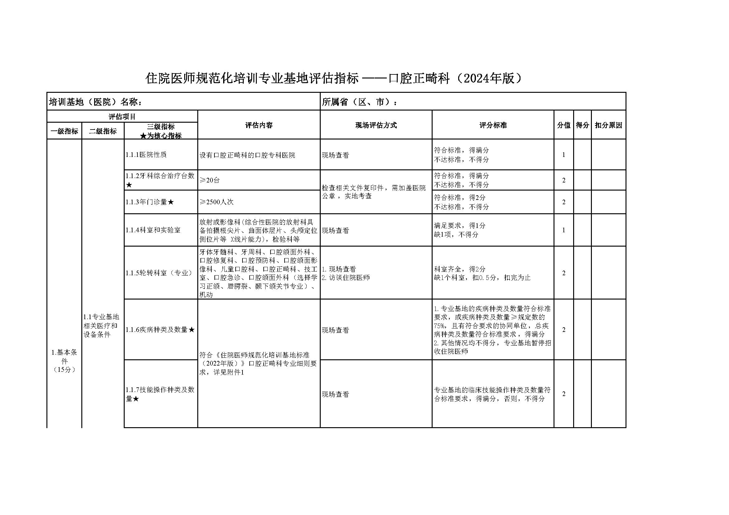 住院医师规范化培训专业基地评估指标(2024年版)—口腔正畸科