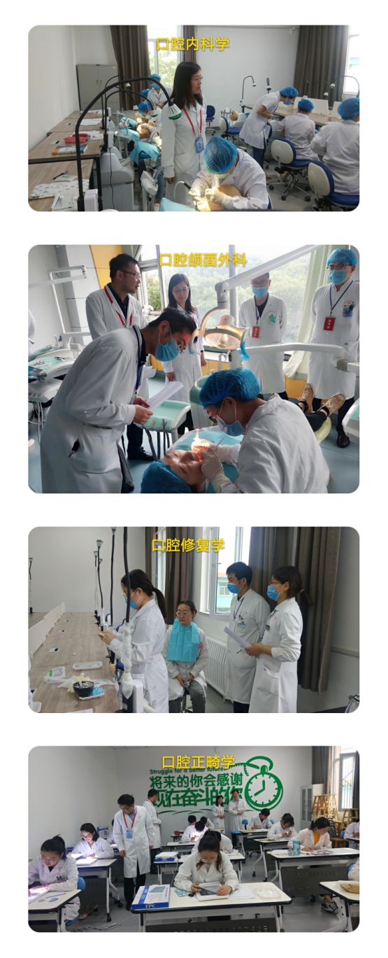 本次考试共分为口腔内科、口腔外科、口腔修复、口腔正畸四组,学生按照抽签顺序参加考试,每组考站的考试均包括门诊病历分析书写和临床技能操作两部分组成。