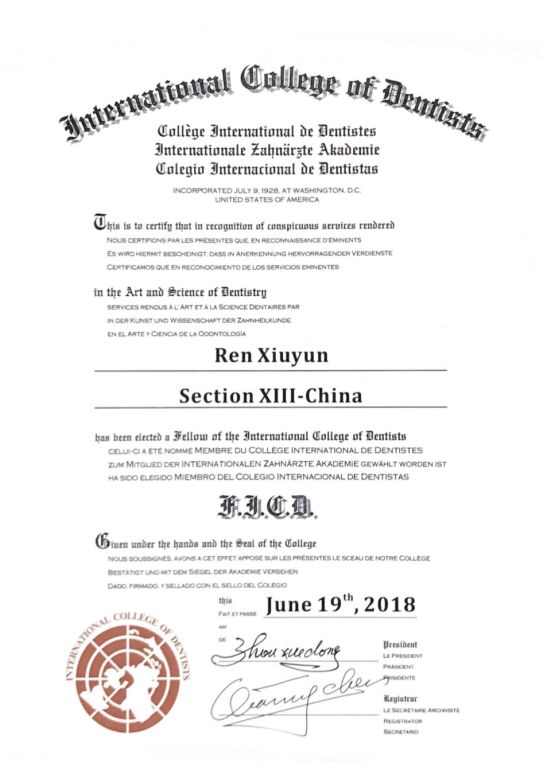 我院党委书记任秀云教授当选国际牙医师学院(ICD)院士