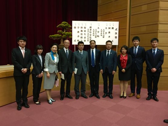 随后,代表团一行参观访问了大阪齿科大学图书馆、中央齿学研究所、附属医院、楠葉校区和牧野校区,并探望了9名万象城目前在日交流的学生,并与他们进行亲切座谈。在楠葉校区,代表团与中国驻大阪总领馆代表教育室室长吴劲松参赞和盛弘强领事一同参加了开学式并就中日友好交流、学术共享进行了沟通和探讨。