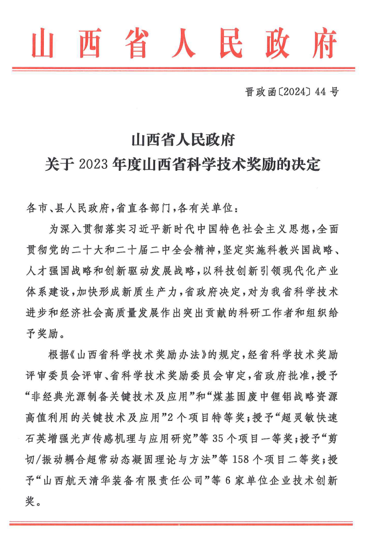 近年来,我院高度重视和支持科学研究工作,在院党政的正确领导下,紧密围绕学校“双一流”建设和山西“1331”工程内在需求,扎实推进有组织科研,以培育“大成果、大项目、大学者”为重点工作,建立系统完备的科研管理机制、科学考评机制以及重大科技成果培育机制,营造了良好的科研生态和氛围。此次获奖是任秀云教授团队和王兴教授团队经过长期探索实现的从量的积累到质的飞跃,获奖数量创我院历史新高,标志着我院科研工作在基础研究和应用基础研究方面取得新的突破。