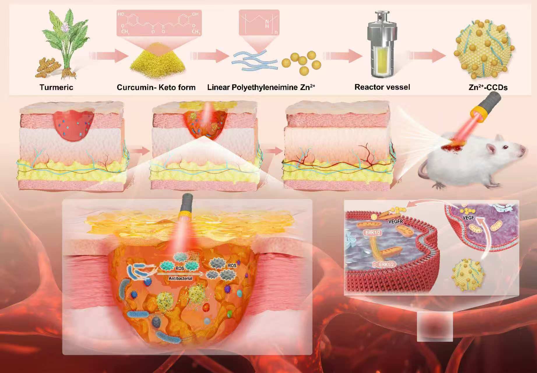 我院李冰教授团队发文:锌掺杂姜黄素碳点联合光动力疗法通过VEGF通路促进感染伤口愈合的研究