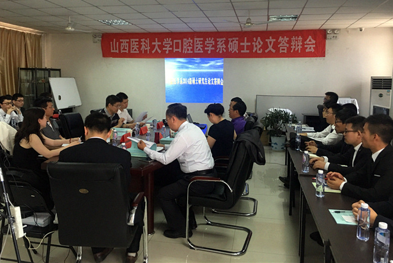 本次答辩会分别由口腔颌面外科教研室、口腔修复科教研室、口腔正畸教研室和口腔内科教研室自行组织,共44名硕士研究生参加。答辩过程中,研究生们认真汇报了自己的研究成果,评审专家们在听取汇报后,针对毕业论文的主要观点、理论框架、方法、创新点、论文格式及学术规范等方面进行了具有针对性的评价,并提出了需要进一步改进和完善的建议。评委们对此次研究生的学位论文整体质量及学生的现场答辩表现均给以积极的肯定。