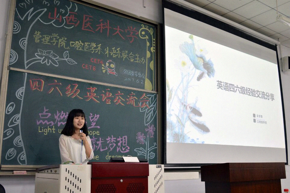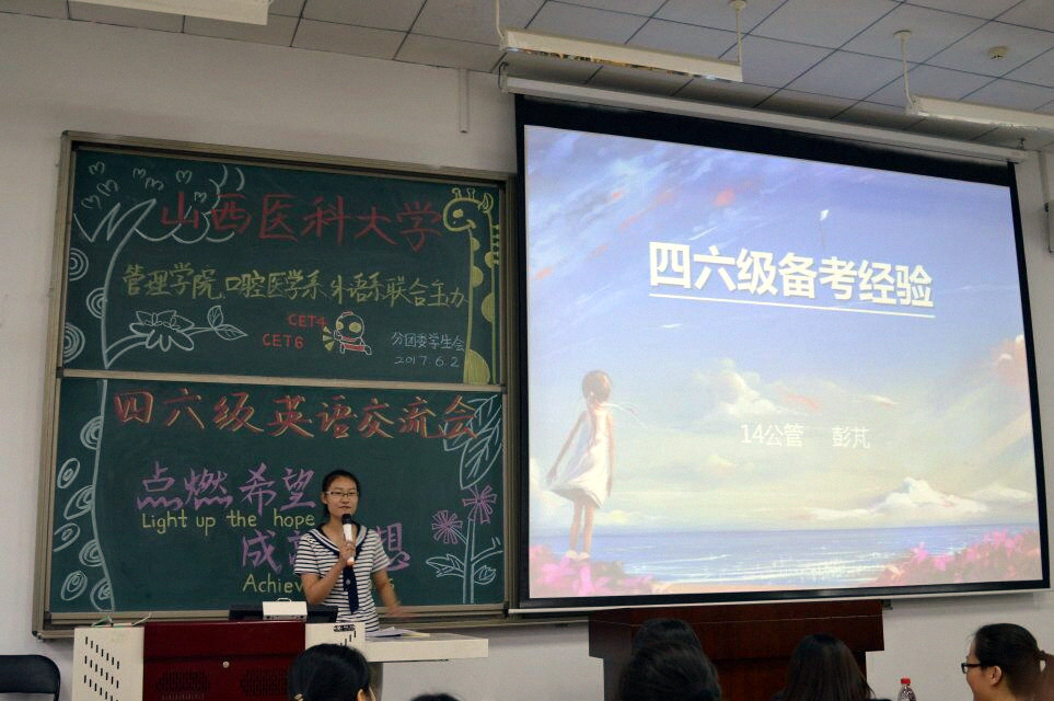 为了迎接即将到来的英语四六级考试,激励同学们更好地学习英语,6月2日,口腔医学系、外语系、管理学院在新校区慎思楼B101教室联合举办“点燃希望,成就梦想”四六级英语交流会。管理学院分团委乔晓梅书记和口腔医学系分团委张楠书记及口腔医学系、外语系和管理学院学生参加了活动。