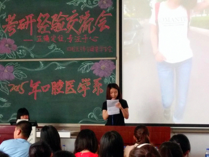 6月14日,上午口腔医学系于新校区慎思B-301教室举办了考研交流会,邀请了5位口腔医学系已经考研成功的同学为大家进行考研方面的答疑解惑,分享自己的考研心得经验。口腔医学系分团委书记张楠与同学们一同分享了考研经验。