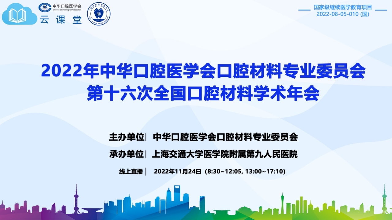 为分享口腔材料最新科研成果、促进学术交流,11月24日,第十六次全国口腔材料学术年会以线上形式召开。本次会议由中华口腔医学会口腔材料专业委员会主办,上海交通大学医学院附属第九人民医院承办,主题为“口腔修复材料的临床与基础研究”。我院2020级研究生张然受邀参会并作口头交流。