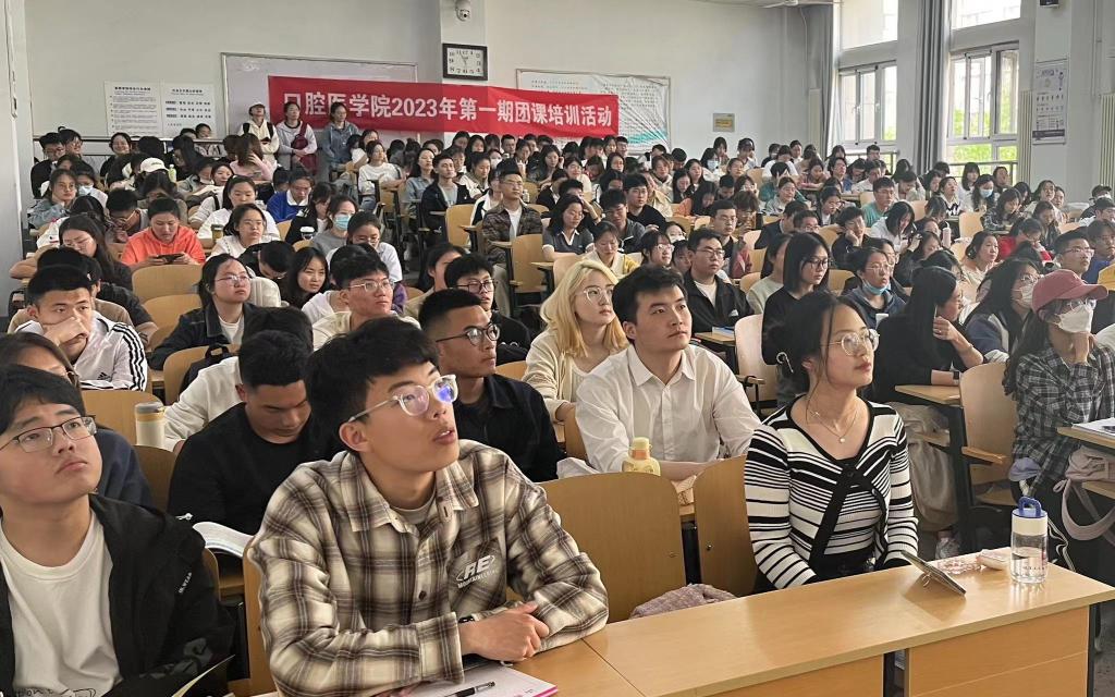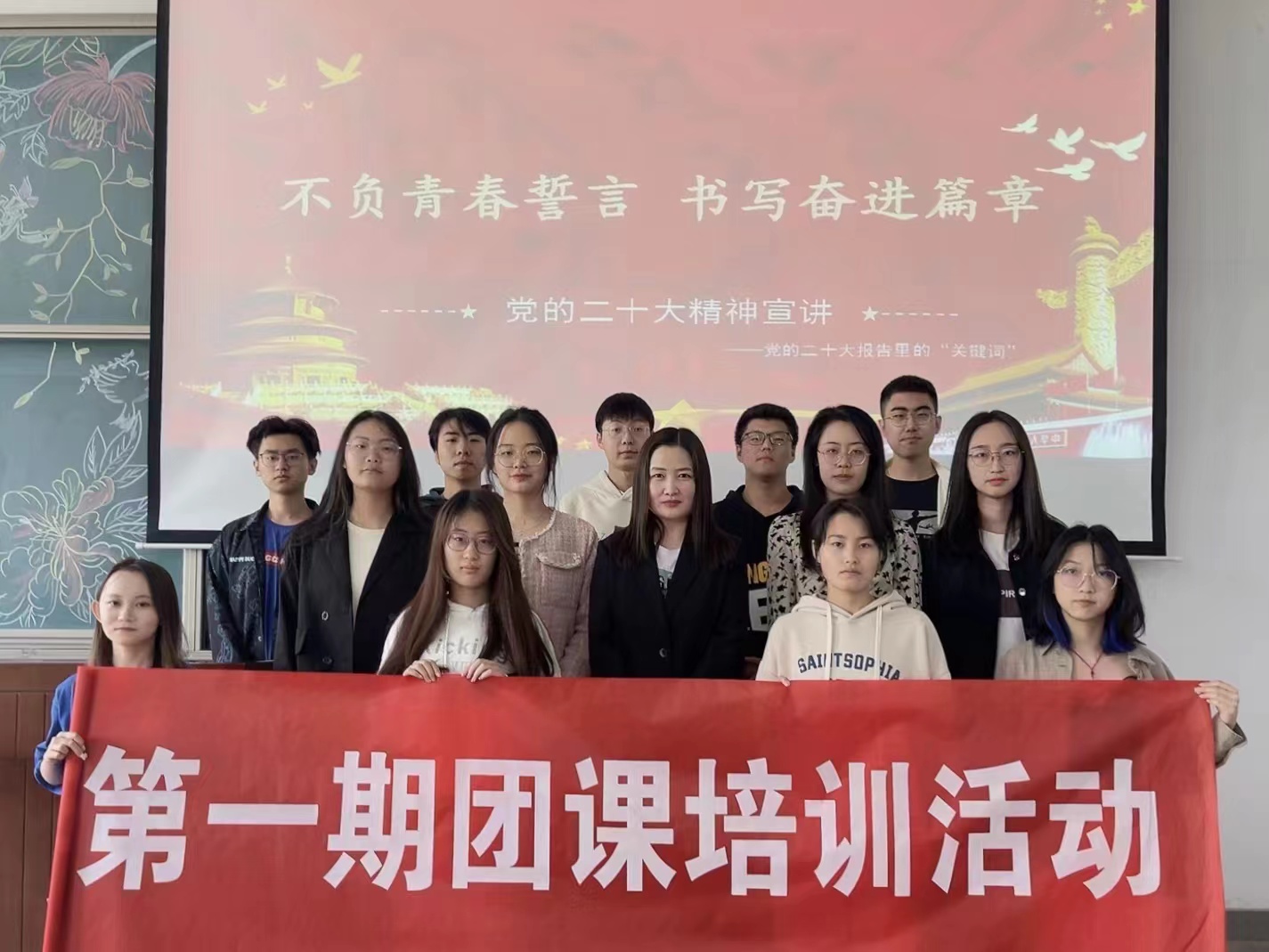 为深入贯彻党的二十大精神,积极响应学校号召,4月18日上午,我院分团委在中都校区慎思楼b201教室举办了2023年第一期团课培训。培训由分团委书记张楠主讲,入党积极分子、推优同学及学生干部共100余名团员青年参加学习。