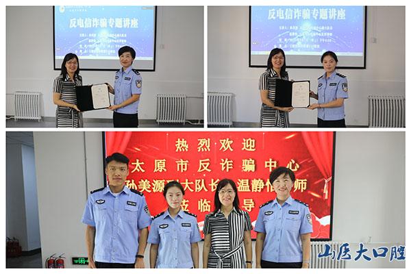 9月7日,我院在科教楼219教室举办了“反电信诈骗”专题讲座,特邀太原市反诈骗中心副大队长孙美源、讲师温静怡两位警官进行专题讲座。我院2018级、2019级硕士研究生、行政职能部门人员参加讲座,我院全体本科生、教职工通过“腾讯会议”线上参加,讲座由党委书记任秀云主持。
