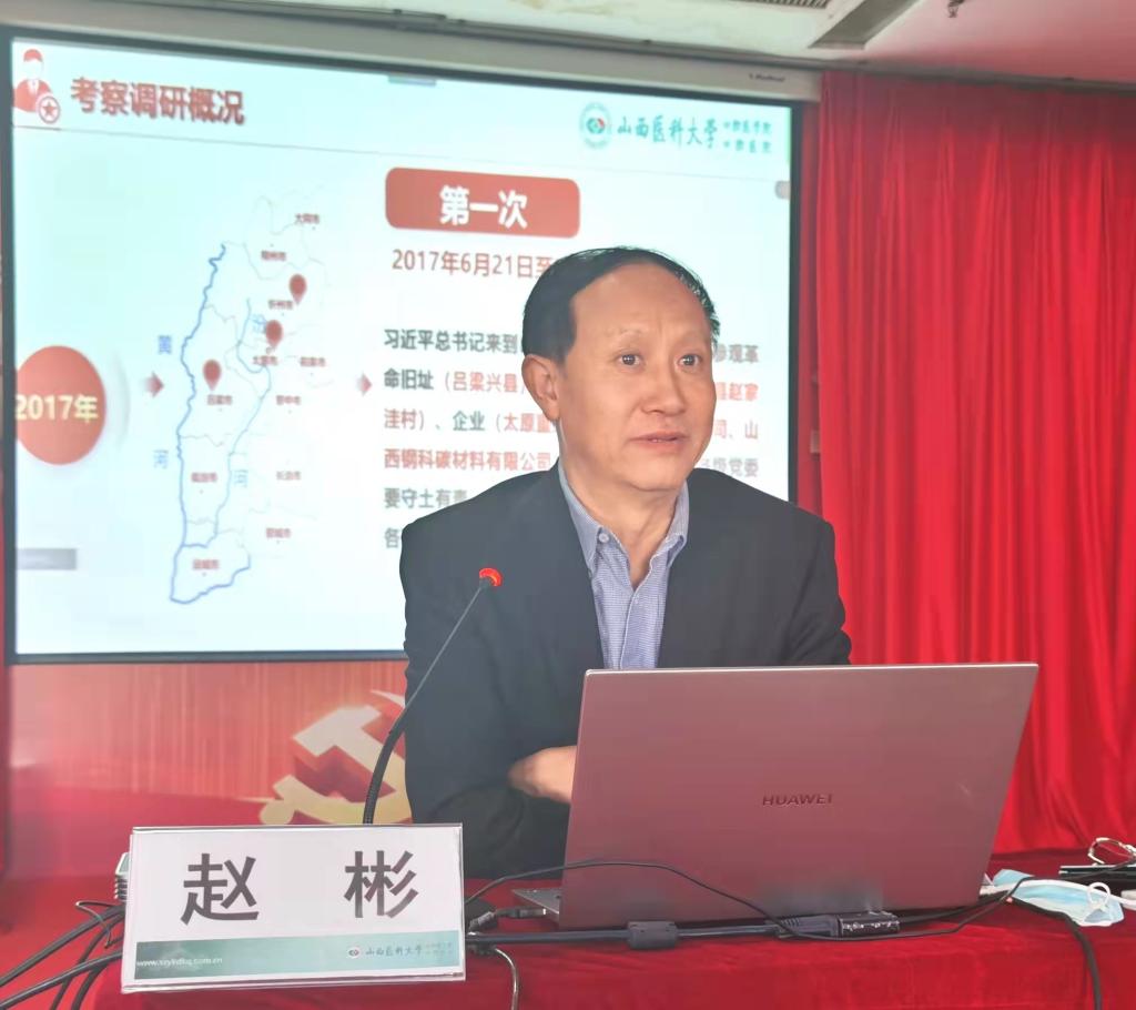 院长赵彬以《学习习近平总书记考察调研山西时的重要指示精神》为主题,采用线上线下相结合的方式,在口腔医院八层教室为全体研究生带来一堂意义深刻的思政教育课。赵院长带领大家共同回顾了总书记五年间三次考察调研山西的情况,以及在总书记的殷切关怀和支持下,山西近几年转型发展的新面貌。