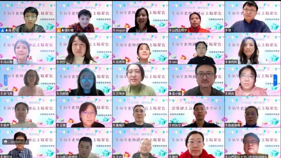 在2022年接近尾声、疫情防控形势严峻的特殊时刻,万象城allwincity官网口腔医(学)院口腔综合实验室举办李丽华老师光荣退休云上联欢会,致敬李丽华老师三十余载爱岗敬业、辛勤耕耘、无私奉献的工作历程,以及其为口腔事业做出的贡献。院领导、各科室部门共计60余名代表共同出席此次联欢会。