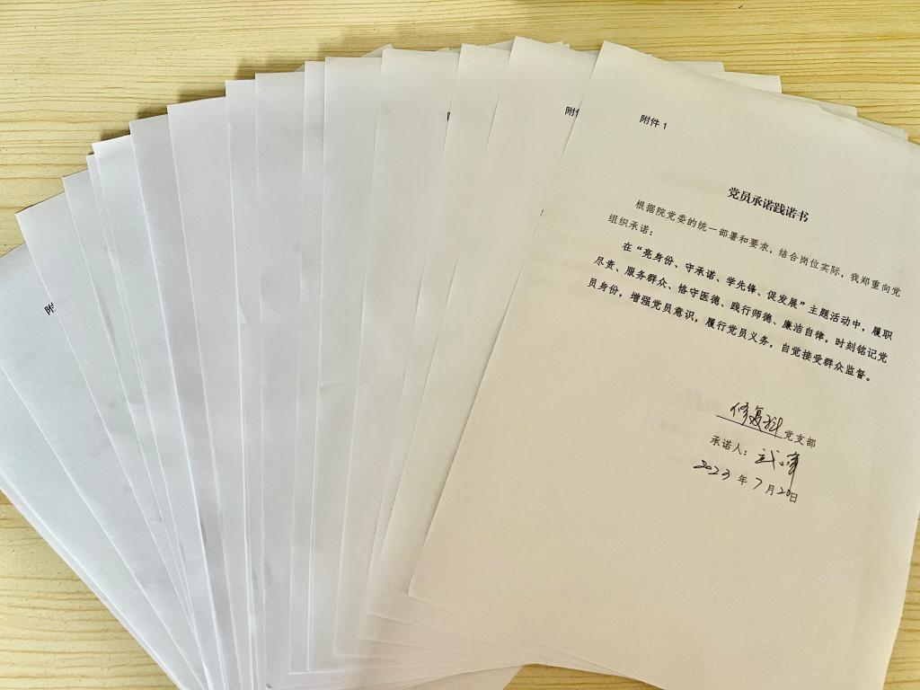 以党支部为单位,组织党员签订《党员承诺践诺书》,共250余份,引导党员结合自身岗位实际与主题教育调研成果,在履职尽责、服务群众、为人师表、廉洁自律等方面做出承诺,并将承诺转化为办实事、解难事的生动实践。