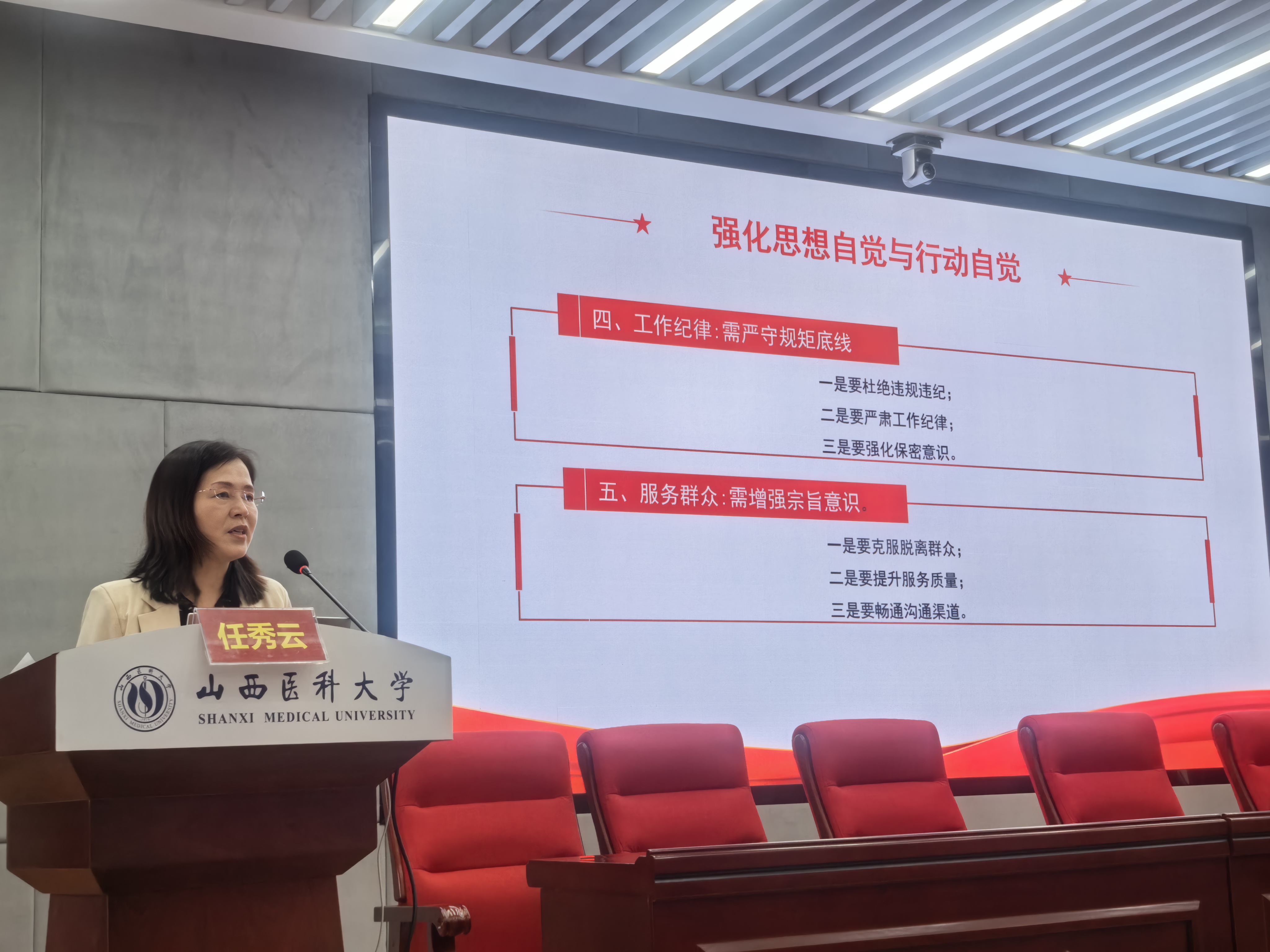 口腔医学院(口腔医院)党委书记任秀云讲授 深入贯彻中央八项规定精神学习教育专题党课