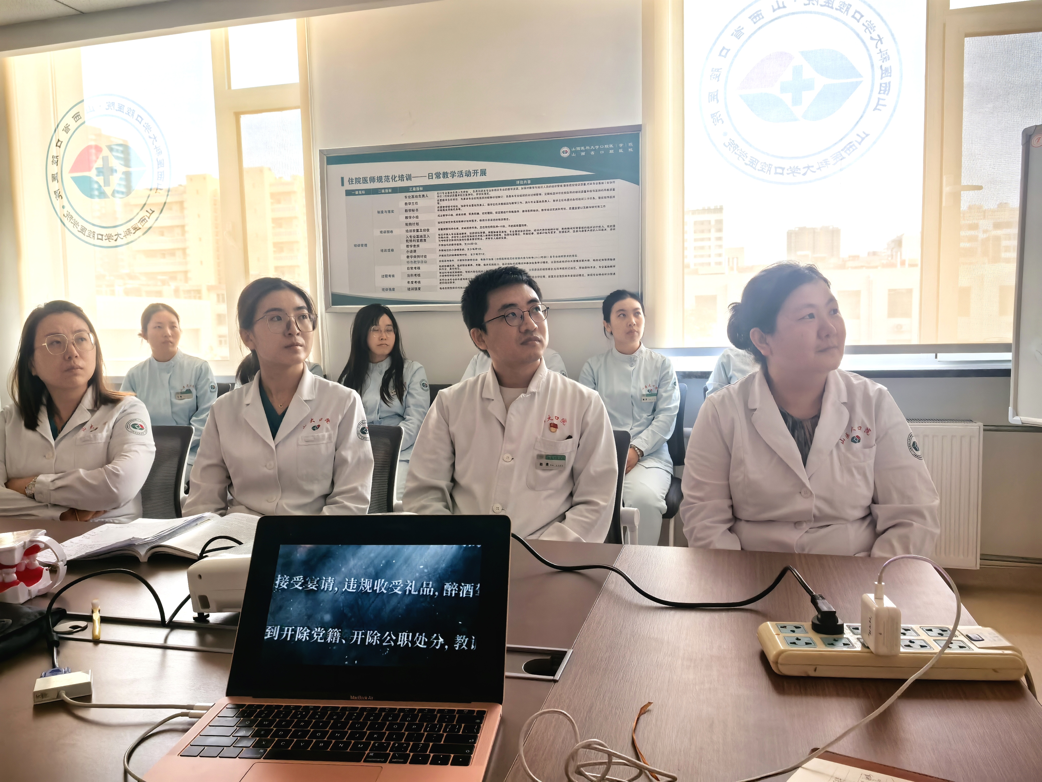 为深入贯彻中央八项规定精神学习教育走深走实,强化党员干部廉洁自律意识,6月24日,我院牙周科党支部在示教室组织全体党员集中开展警示教育主题党日活动。