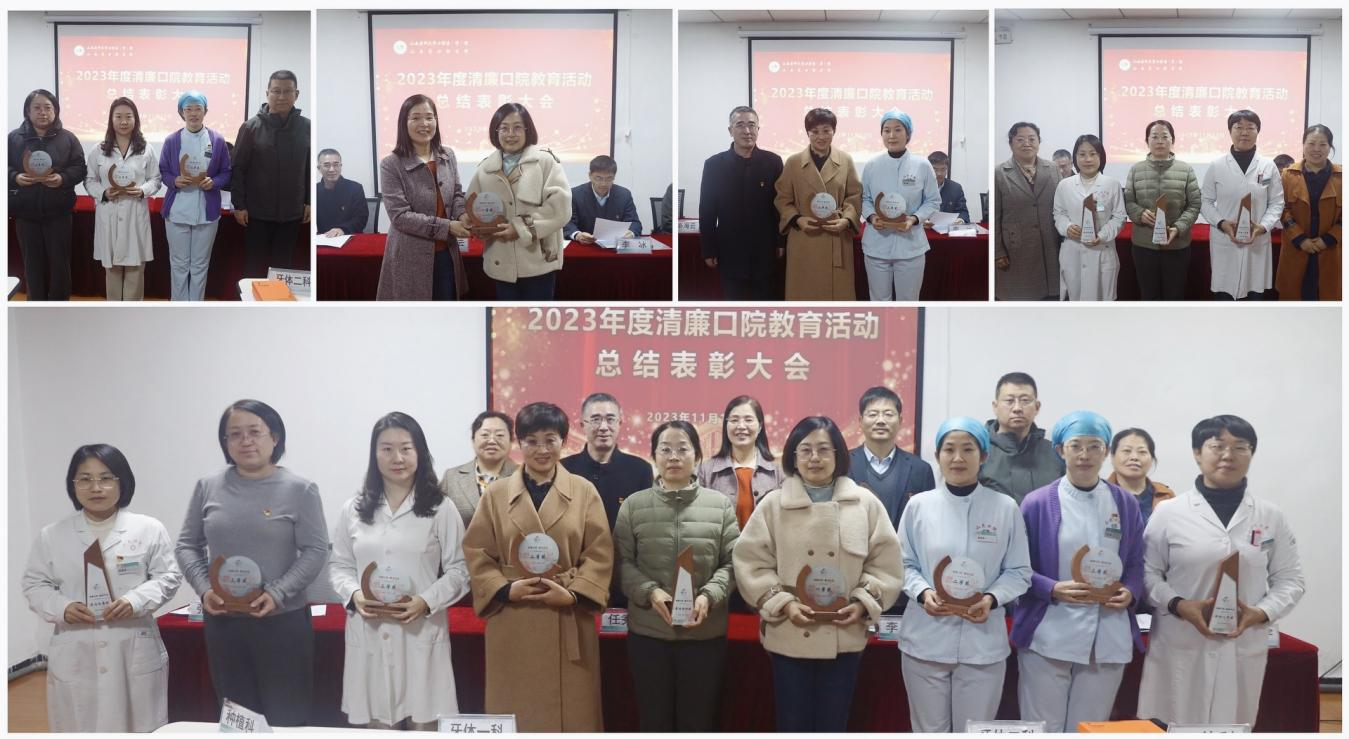 11月13日,我院在小白楼三层会议室召开了廉洁文化教育月活动总结表彰大会,旨在总结此次活动的经验和成果。纪委书记秦海云宣读了收集自28个科室的31个作品中的获奖作品,并对清廉口院建设教育月活动进行了全面总结。党委书记任秀云、纪委书记秦海云以及副院长葛学军、张芳、王翔宇分别为在清廉口院教育月活动中表现突出的科室部门颁发了奖杯。