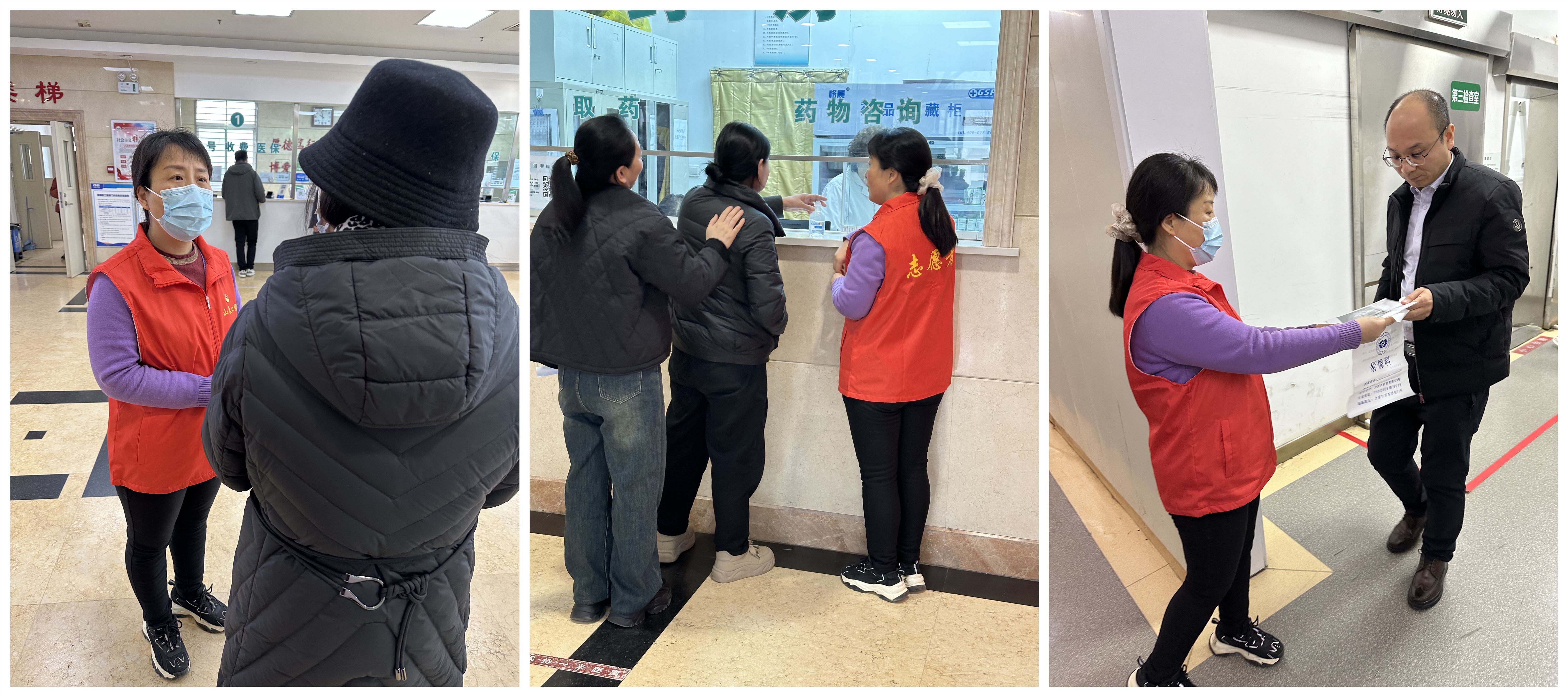 医院主楼一层,随处可见她们的身影,分布在大厅的导医台、出入院办理窗口、门诊收费处、电梯旁等多个服务岗位。她们主动为患者介绍医院环境、诊疗特色、专家坐诊时间及各科室就诊流程;积极维护大厅就诊秩序,引导患者进行线上挂号缴费,大大缩短了患者排队时间;主动询问患者病情,耐心解答患者及家属的各类咨询;对老弱病残及特殊患者提供绿色通道,必要时全程陪同。她们努力为患者提供就医便利,主动为每一位有需要的患者提供志愿服务,提升患者的就医感受,以“争做雷锋式青年、争创群众满意窗口、争创优秀服务标兵”为基准,通过自己热情的服务、专业的知识,赢得了患者的信任与赞美,成为医院一道靓丽的风景线。