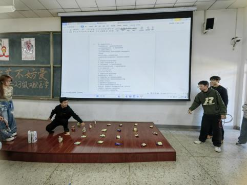随后的游戏环节中,同学们踊跃参加了“套圈问答”与“正话反说”项目。“套圈问答””让同学们在赢取礼品的同时,回答有关艾滋病来源、传播途径、预防措施等问题,在欢乐中加深了防艾知识记忆;“正话反说”则在锻炼参与者思维敏捷性的同时,强化防艾知识点,使知识深入人心。