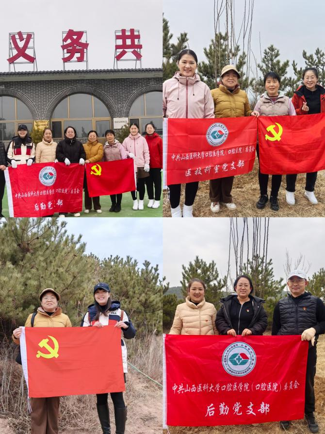 为践行绿色发展理念,增强党员职工的环保意识和社会责任感,3月11日,万象城allwincity官网口腔医院医技科室党支部、后勤党支部、干保黏膜科党支部赴太原市阳曲县义务植树基地,开展了以“绿动未来,医心向党”为主题的义务植树活动。