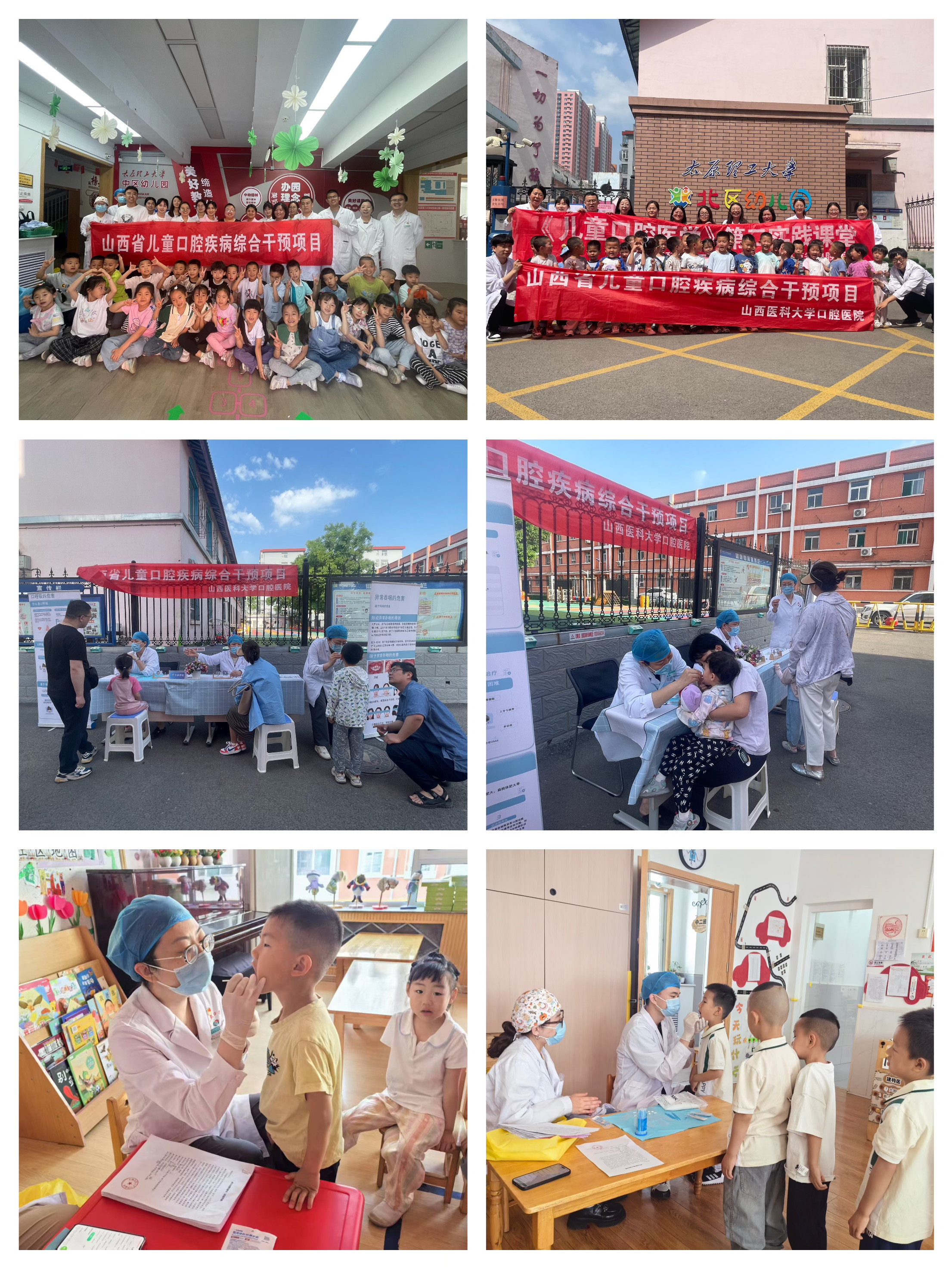 此外,5月20日和6月2日,儿口预防科党支部医护人员走进太原理工大学北区幼儿园和太原理工大学中区幼儿园,开展“山西省儿童口腔疾病综合项目”口腔义诊及局部用氟活动。活动现场医护人员为每一名前来咨询的群众进行了详细的口腔检查,耐心解答了龋齿、牙列不齐等常见问题,并提供了个性化的治疗方案和日常护理指导。活动共对867名儿童进行了口腔一般检查、口腔健康宣教,将检查结果及时反馈给家长。通过口腔一般检查和签署知情同意书,筛选出505名符合适应证的儿童施以局部用氟,并为所有儿童发放口腔健康科普宣传折页,让适龄儿童在幼儿园就能享受到优质的口腔医疗服务,受到了老师、家长和小朋友的一致好评。