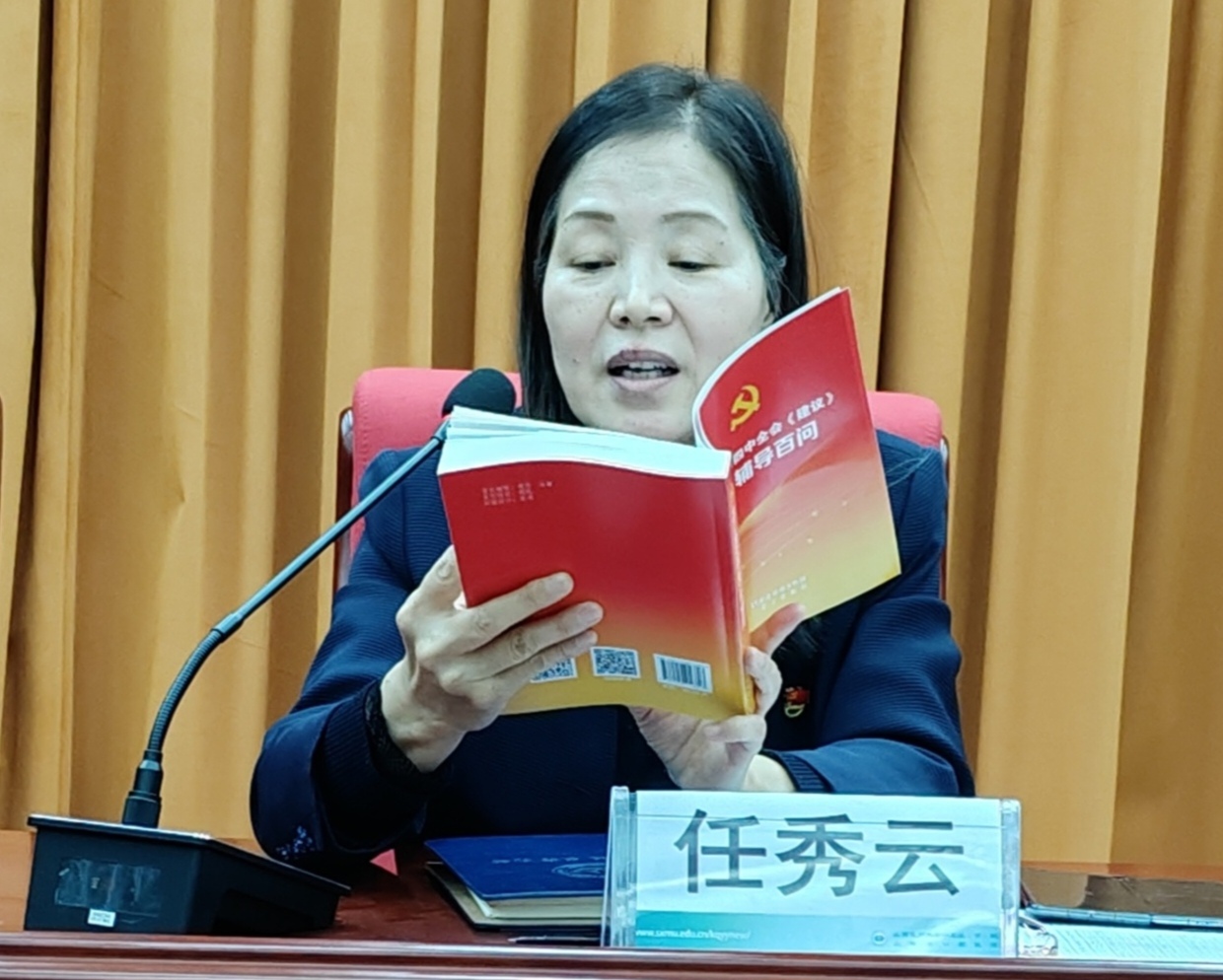 会上,各支部书记、科室及部门负责人依次诵读《党的二十届四中全会学习辅导百问》核心章节,在逐字逐句的研读中把握政策精髓;任秀云书记结合全会公报核心内容与我院发展实际,对全会精神进行系统解读。