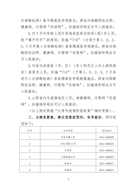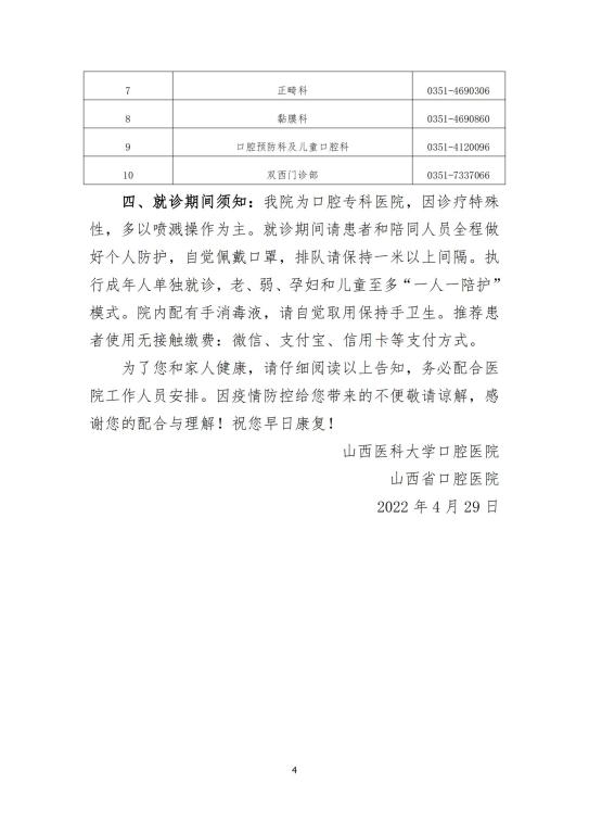 口腔修复科0351-4690377    口腔种植科0351-4690227    口腔正畸科0351-4690306    口腔颌面外科0351-4690307